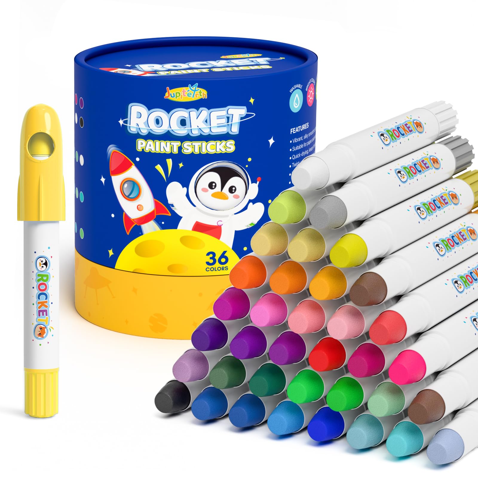 Palitos de pintura de témpera Rocket de 36 colores con 120 páginas para colorear PDF, secado rápido, no tóxicas y lavables para ni