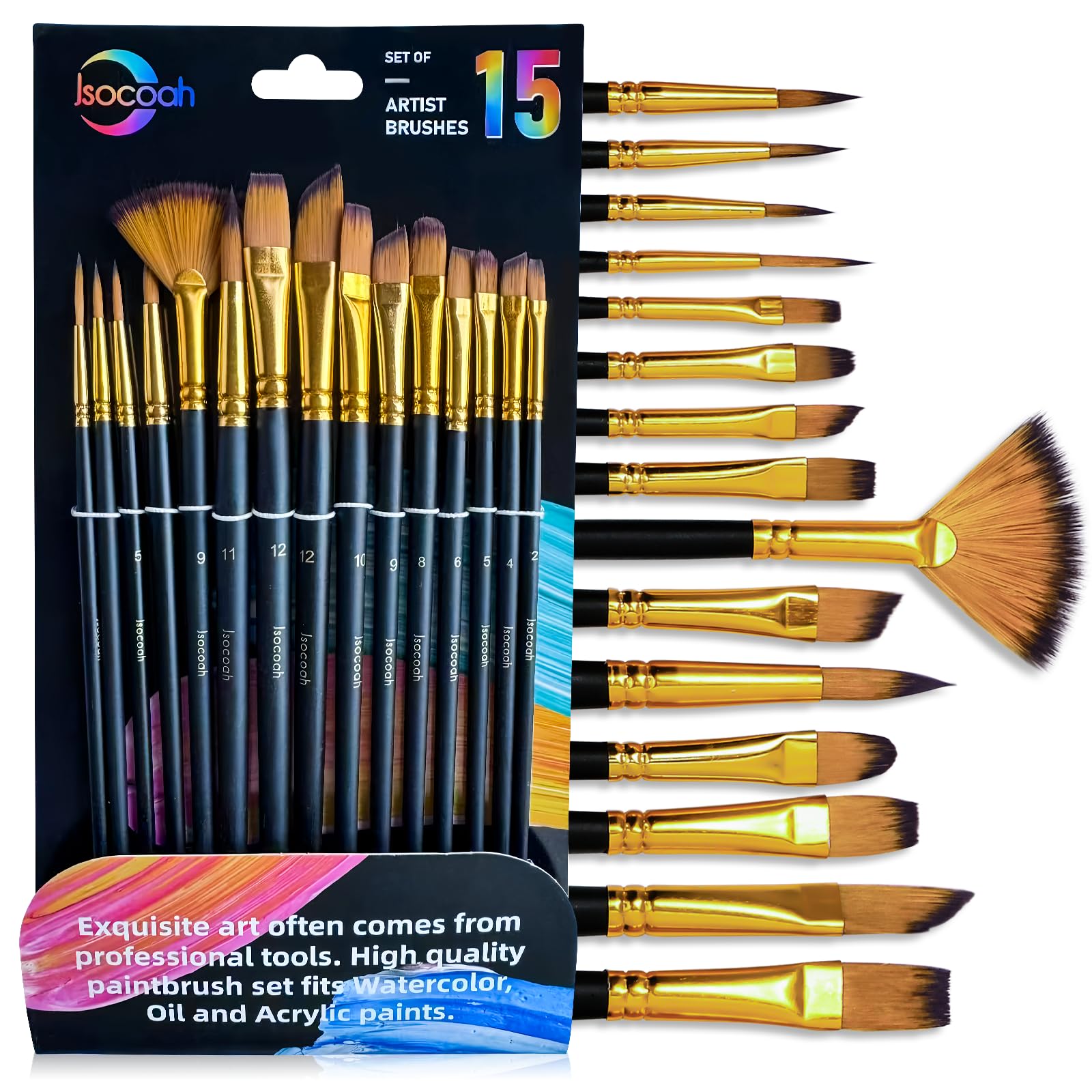 Juego de pinceles de pintura de 15 piezas, pinceles profesionales para niños y adultos, perfectos para lienzo, tela, acuarela, óle