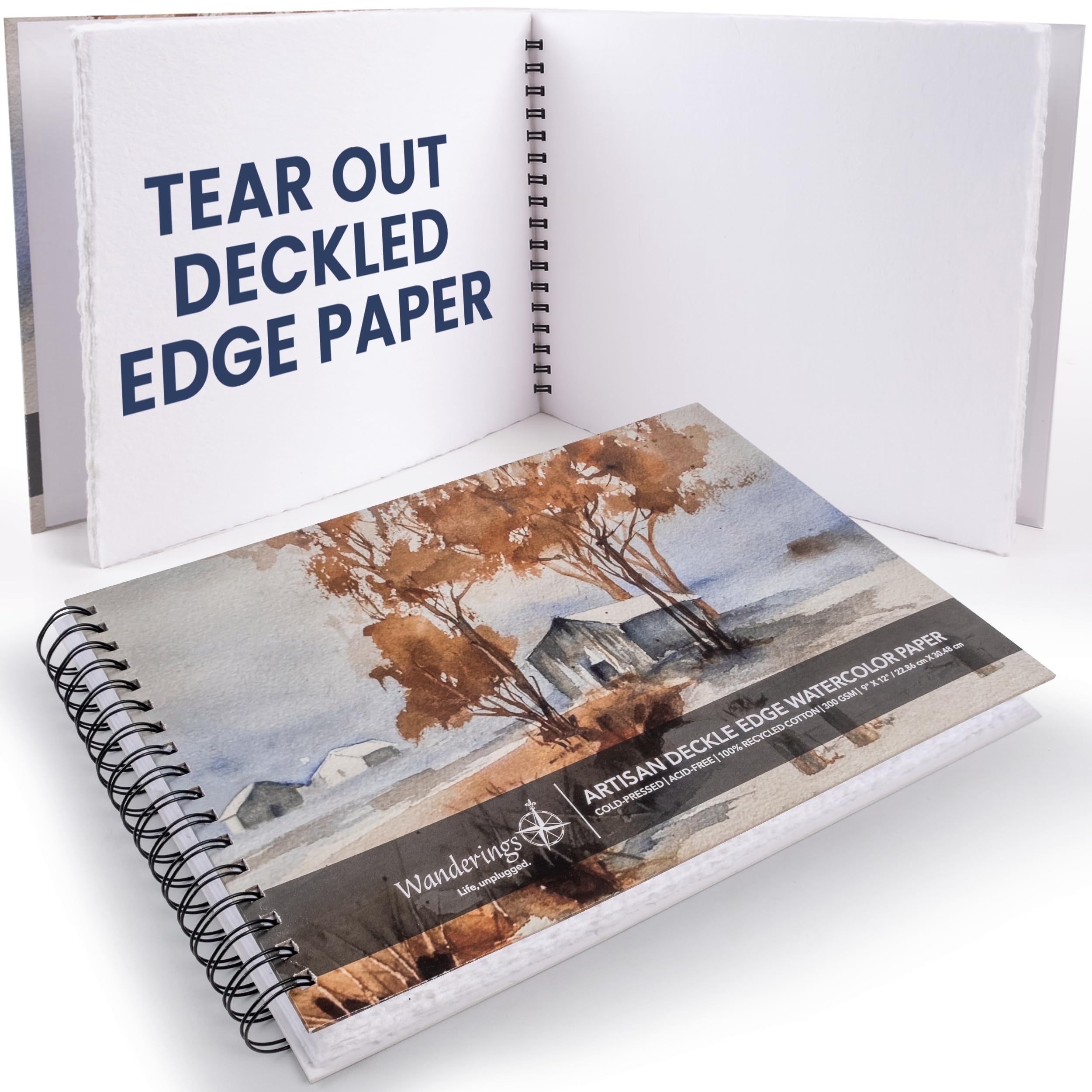 Wanderings Tear Out Watercolor Journal – 9″x12″ – Premium Art Journal with Handmade Deckle Edge Paper Featuring 350 GSM Cold Press