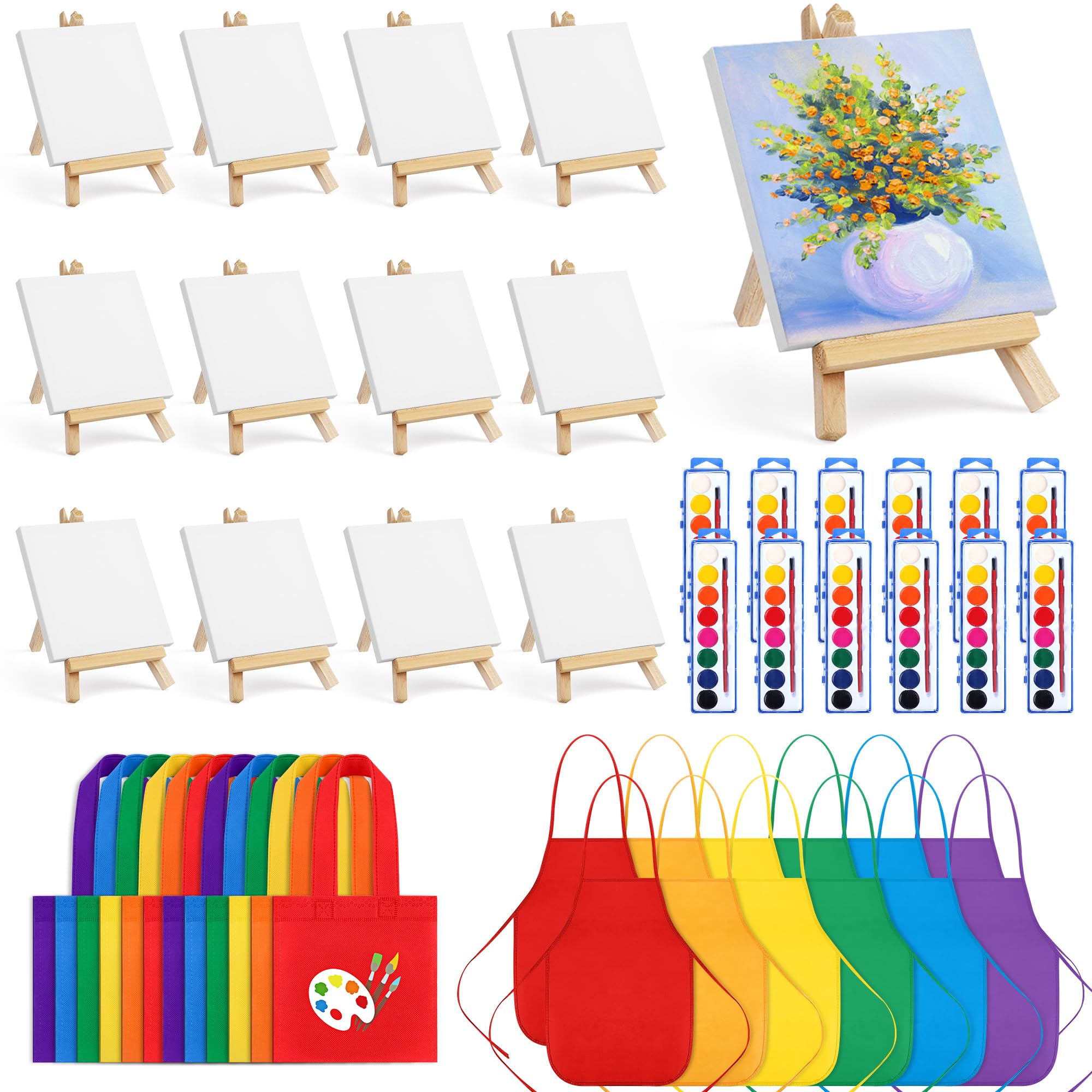 Aodaer El kit de 48 piezas de pintura de acuarela incluye 12 colores de acuarela, paleta de tiras, caballetes de lona de madera, b