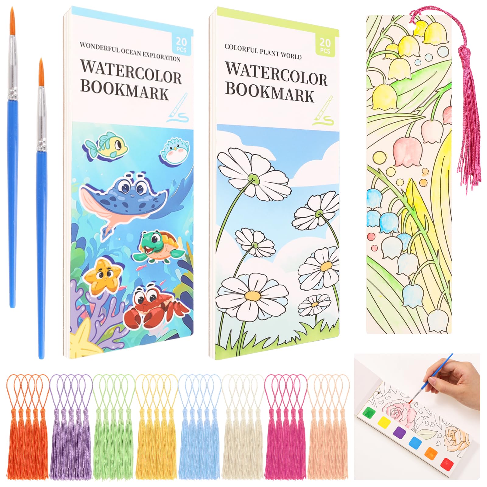 Kit de marcadores de pintura de acuarela de bolsillo, libro de acuarela de 40 hojas para niños, 2 libros de pintura de acuarela pa