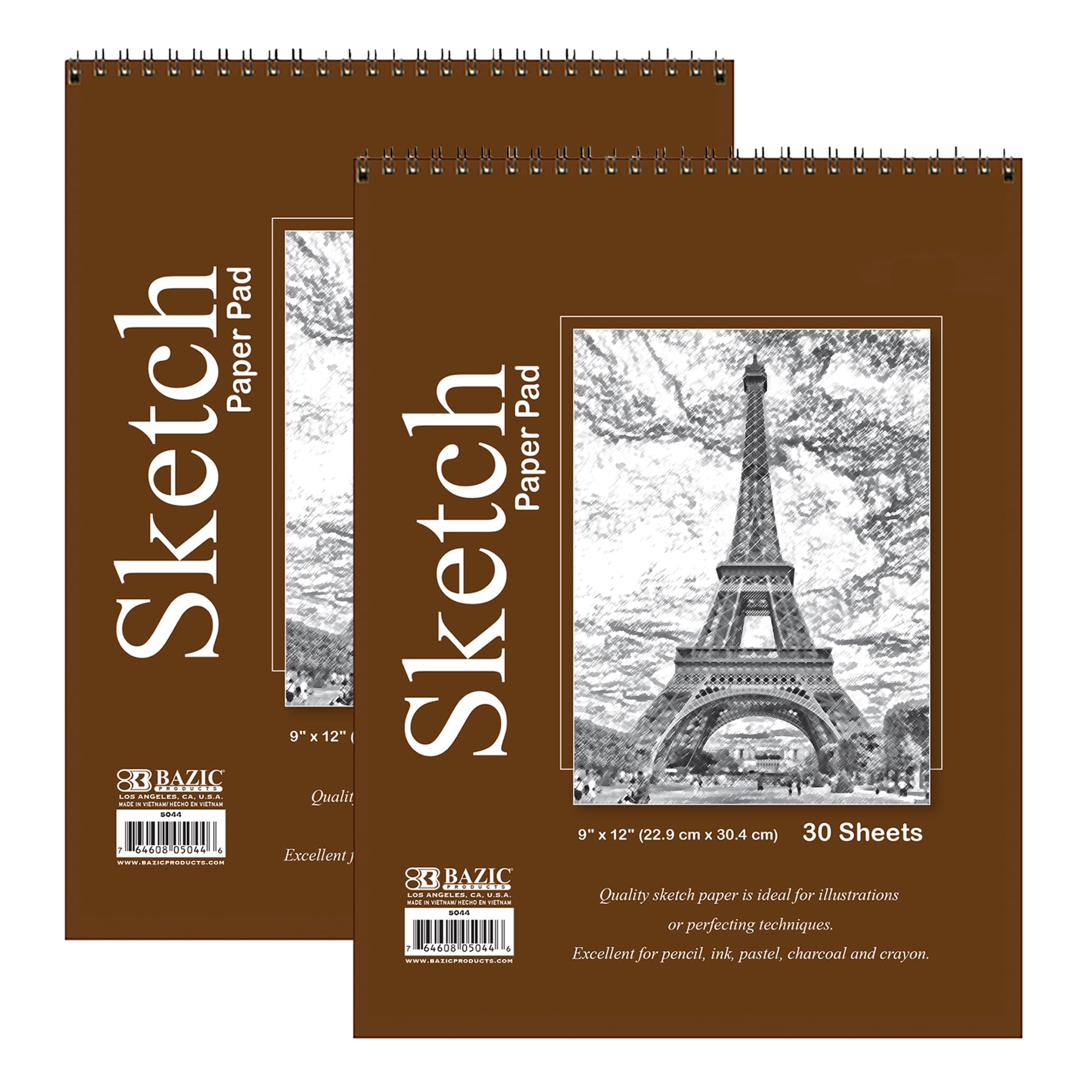 BAZIC – Bloc de bocetos de 30 hojas de 9 x 12 pulgadas, cuaderno de bocetos en espiral encuadernado en la parte superior, libro de