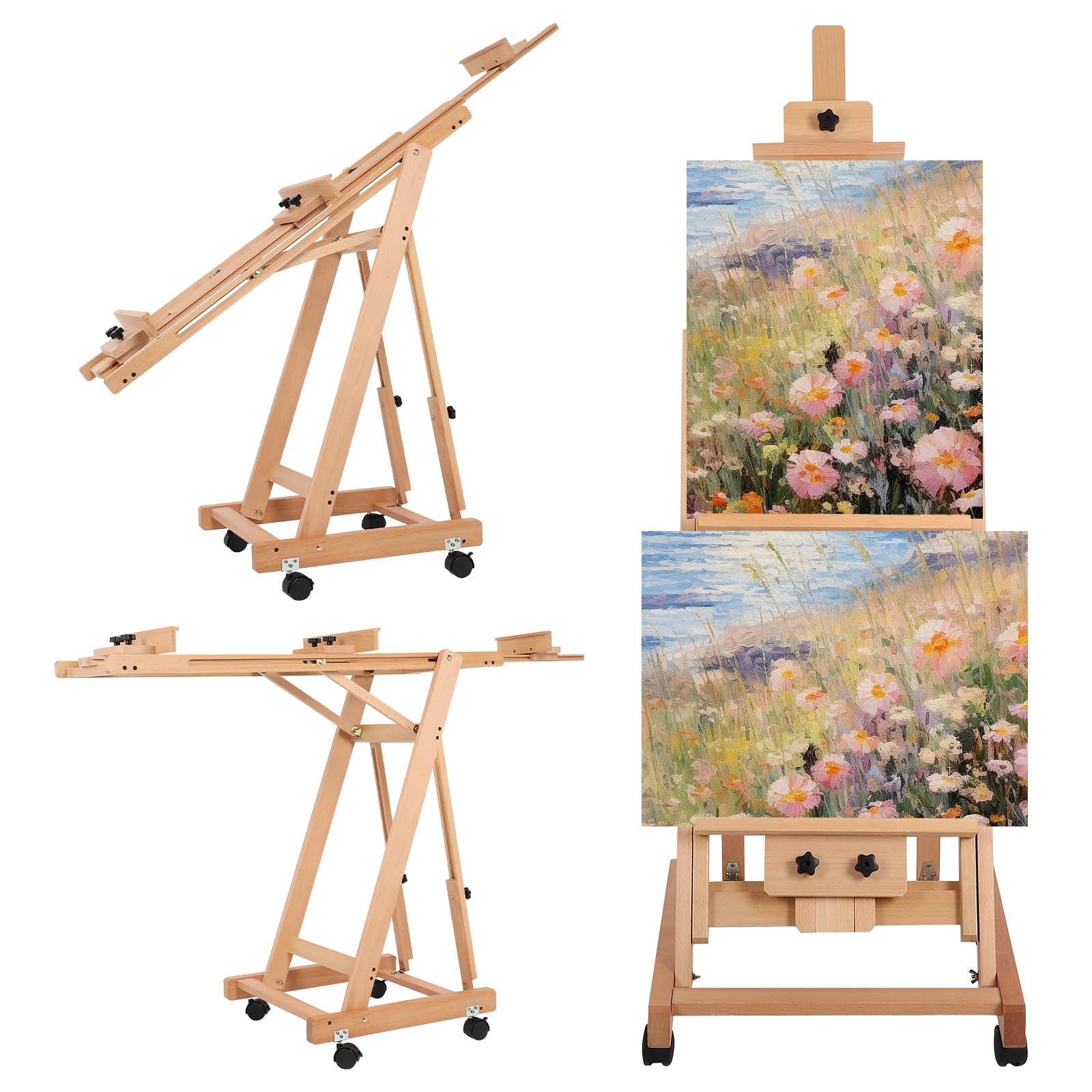 Caballete de pintura para adultos, caballete de marco en H con ruedas frenadas, altura y ángulo ajustable (vertical a horizontal),