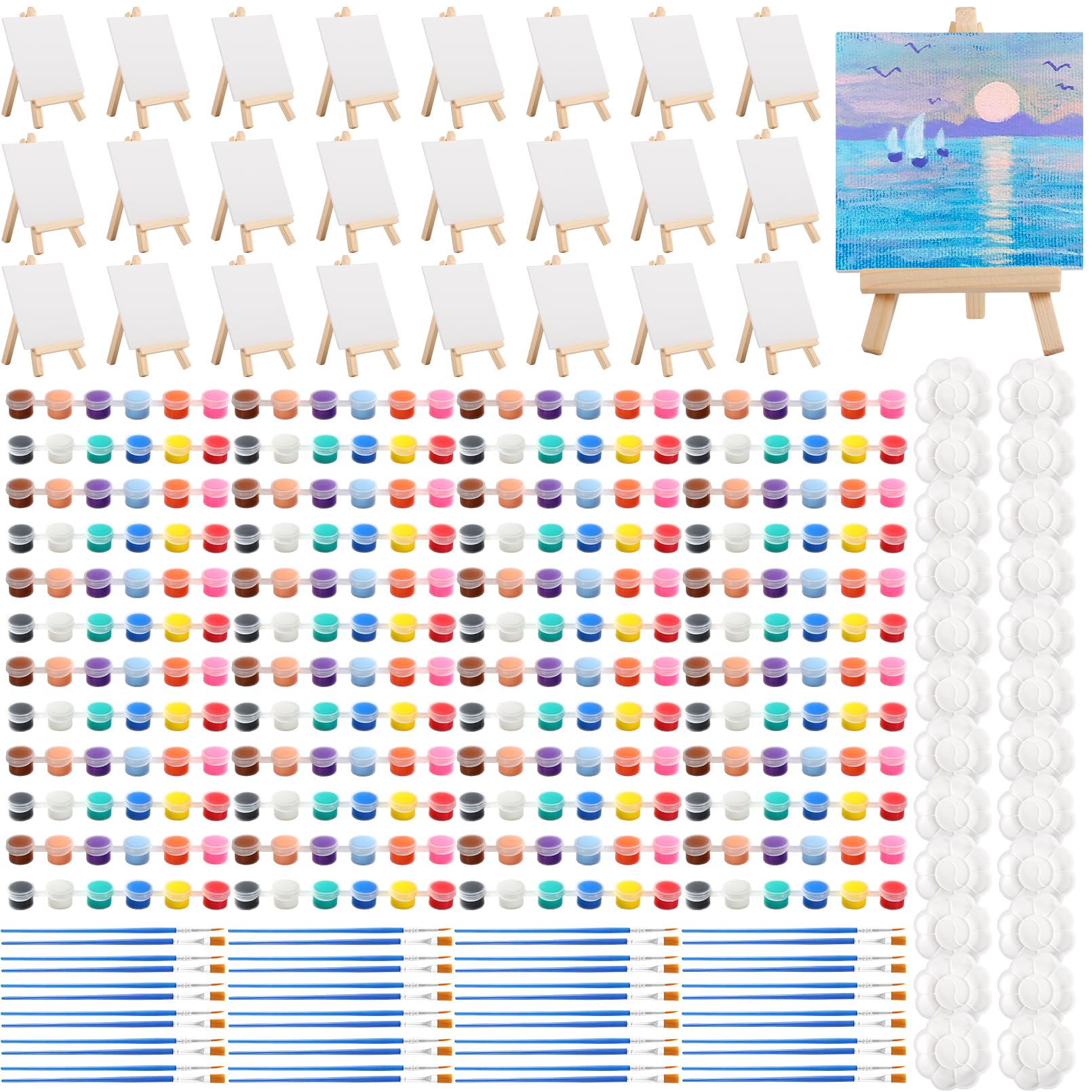 Juego de 24 mini tableros de lona y caballete, 24 piezas de lienzo y caballete, tiras de pintura acrílica de 12 colores, 48 pincel