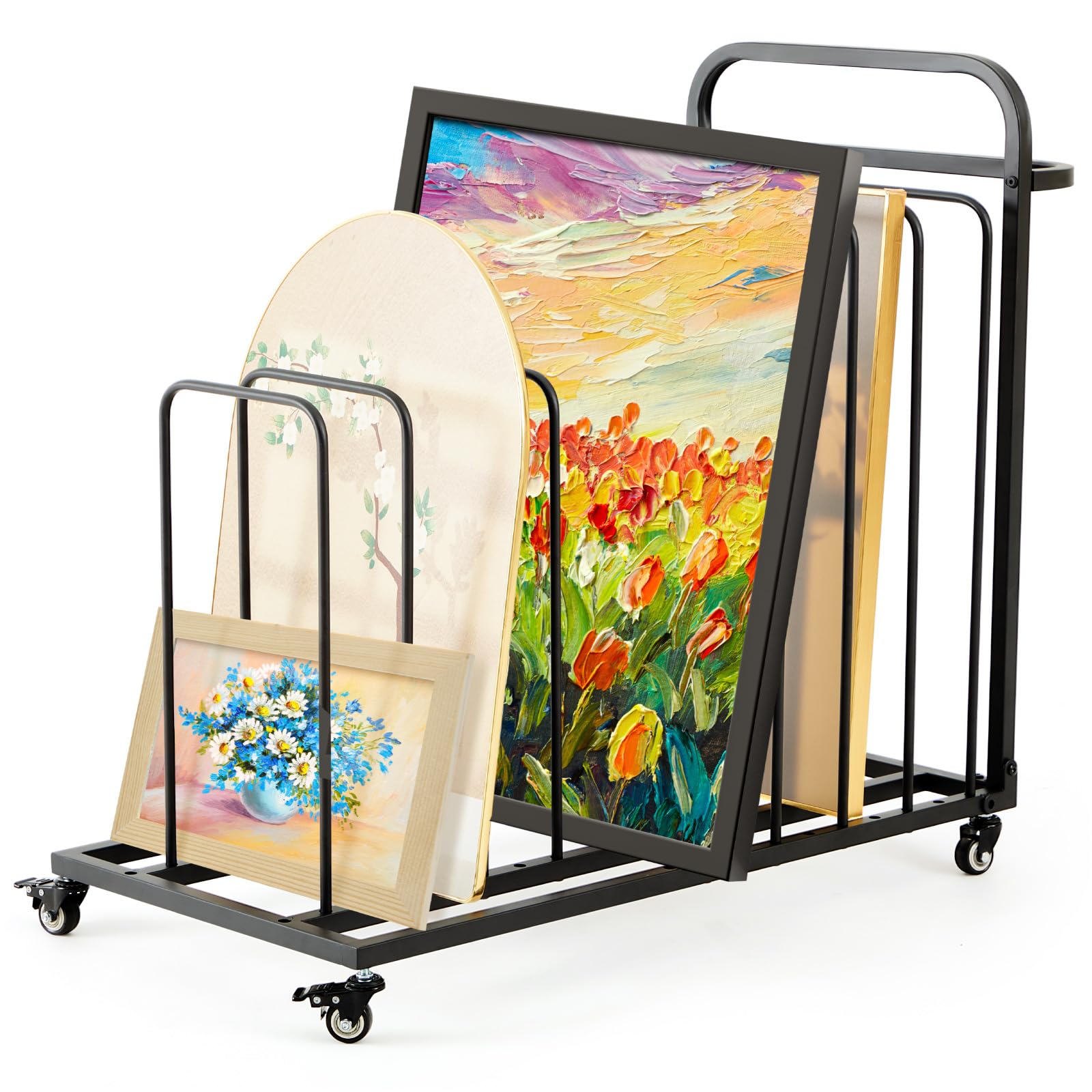 Landhoow Estante de almacenamiento de lienzo de arte, estante de secado de pintura con mango y ruedas giratorias, caballete de alm