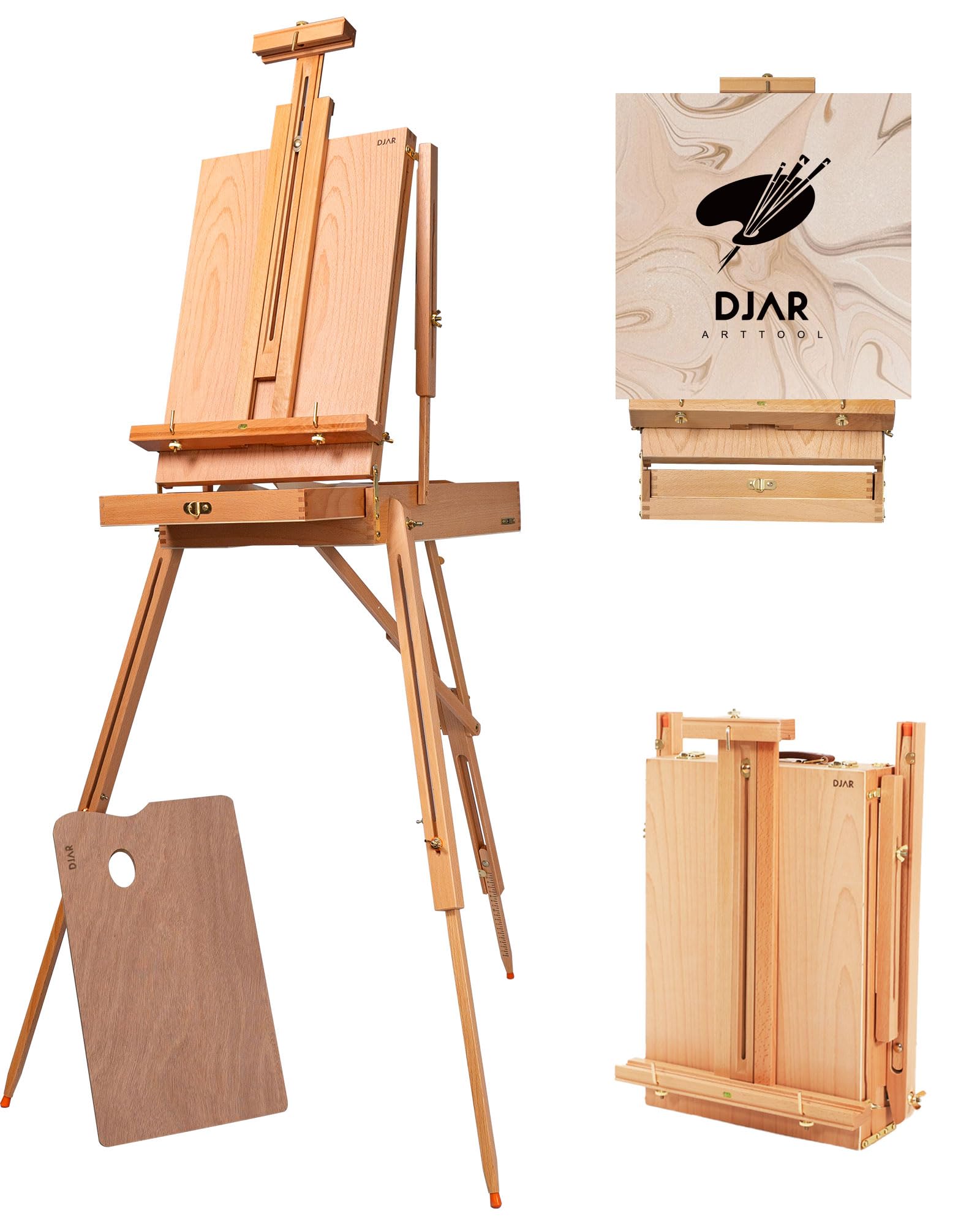 DJAR Juego de 50 piezas de arte acrílico con caballete de arte de 25 pulgadas, caballete de madera de haya ajustable para pintura,