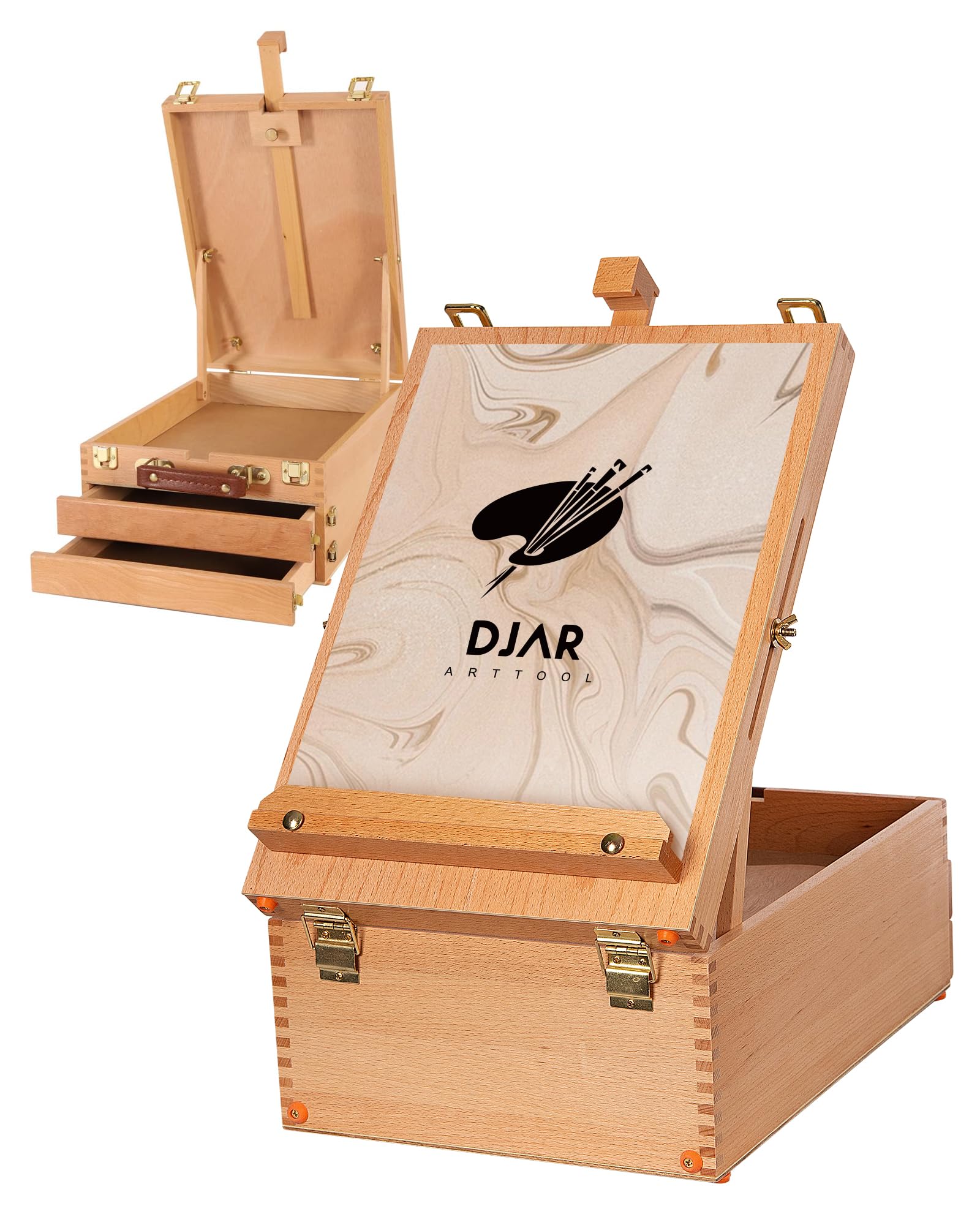 Caja de bocetos grande con almacenamiento de 3 cajones, caballete de escritorio ajustable de madera de haya para pintar, caballete