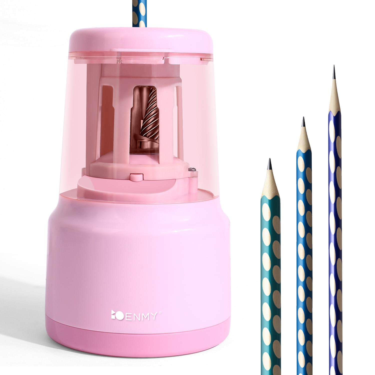 ENMY Sacapuntas eléctrico – Hoja helicoidal resistente, funciona con USB/pilas para lápices de colores n.º 2 y en la escuela, ofic