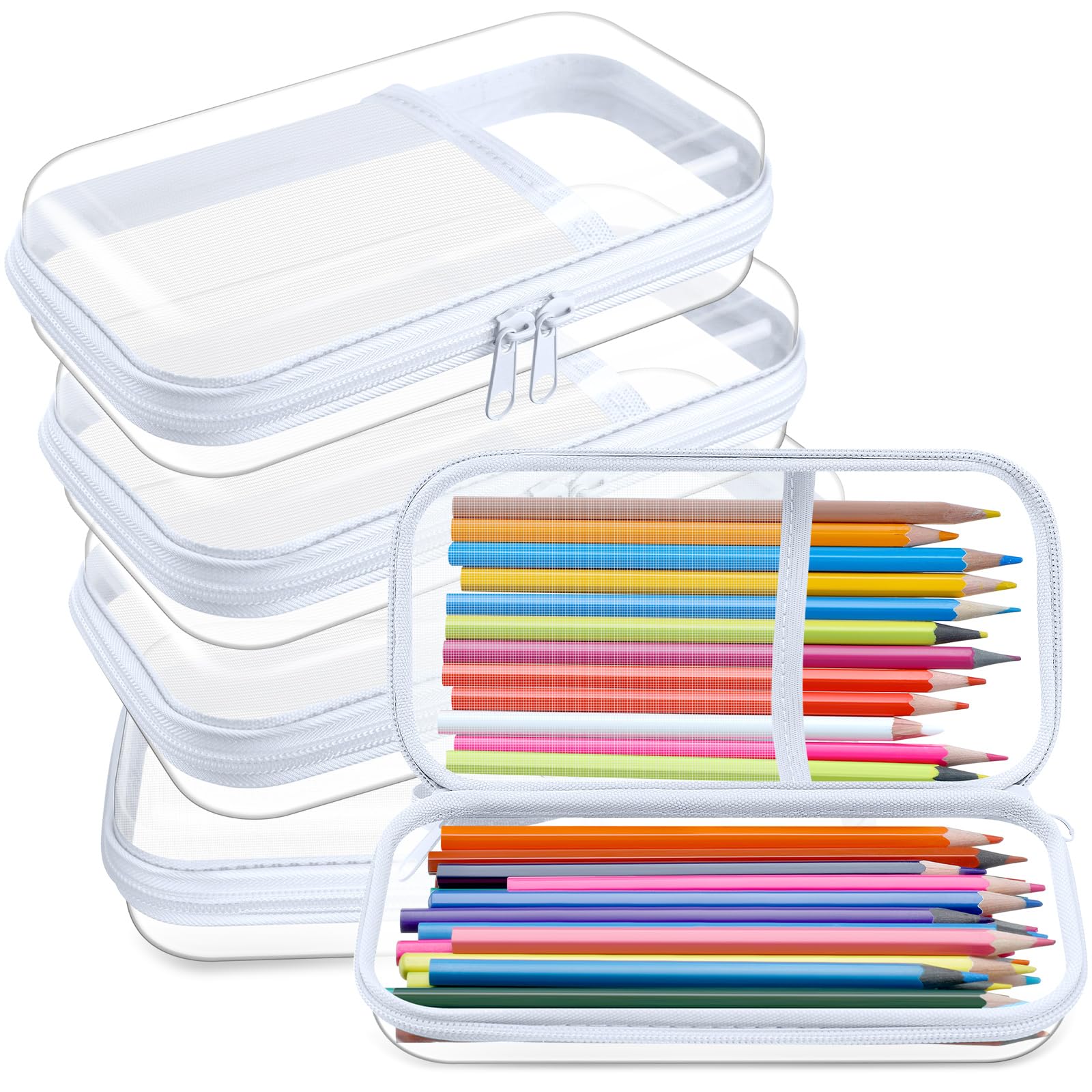 Sanwuta 4 unidades de estuche transparente con cremallera de lados duros, de plástico a granel, estuche organizador de cajas con b