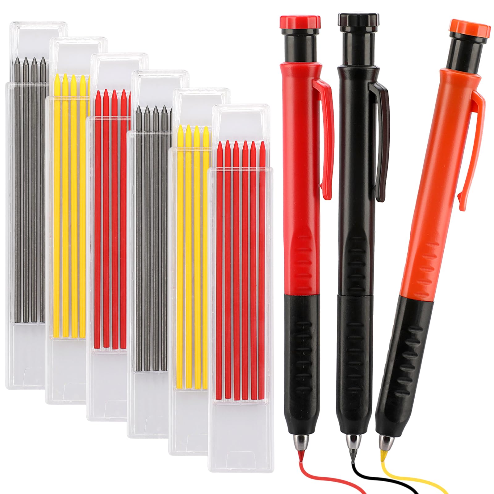 OwnMy Juego de lápices de carpintero mecánico – 3 lápices de carpintero con 36 recambios de 0.110 in y sacapuntas integrado, lápic