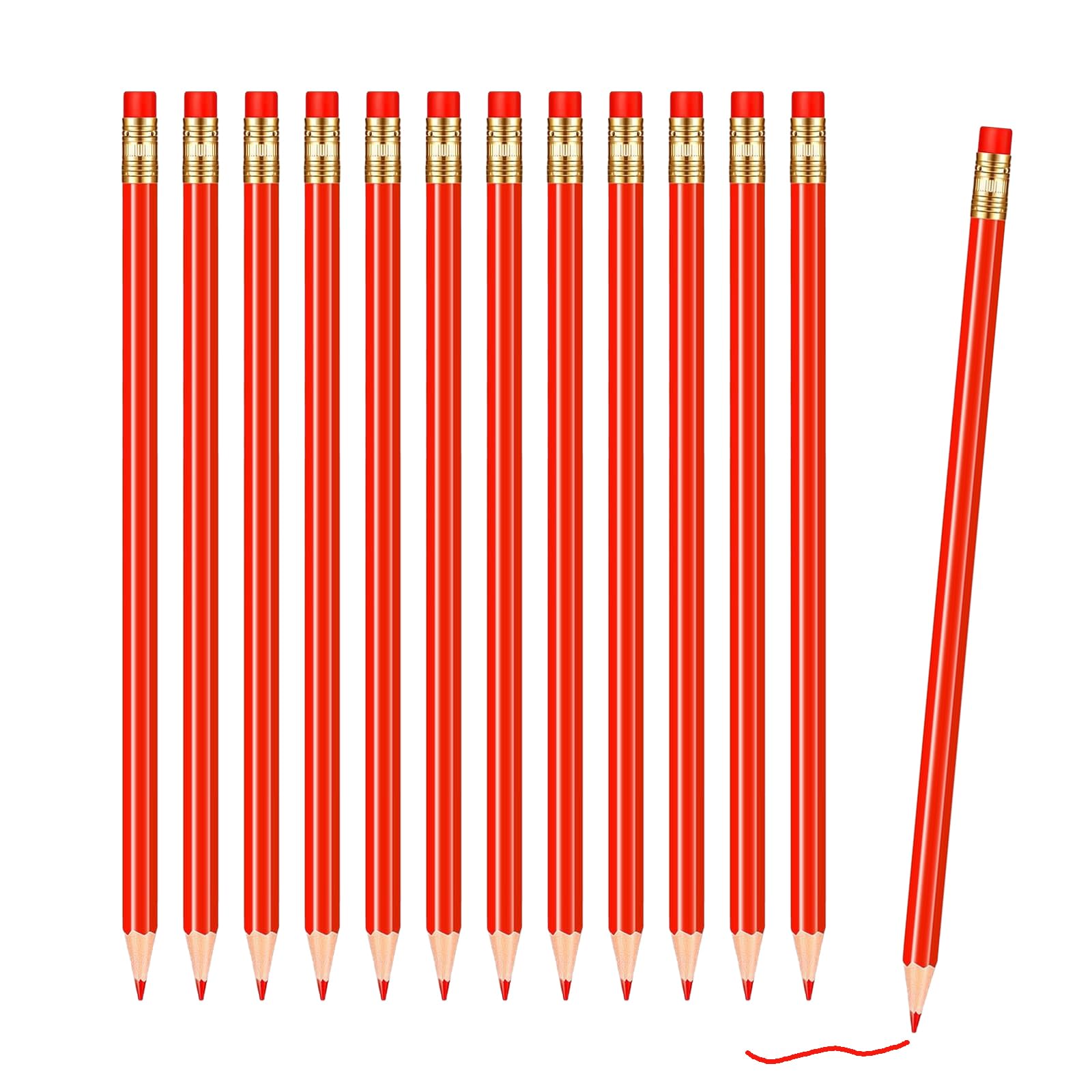 12 lápices de cheques borrables de colores preafilados 2 HB con tapas borrables para verificar (rojo)