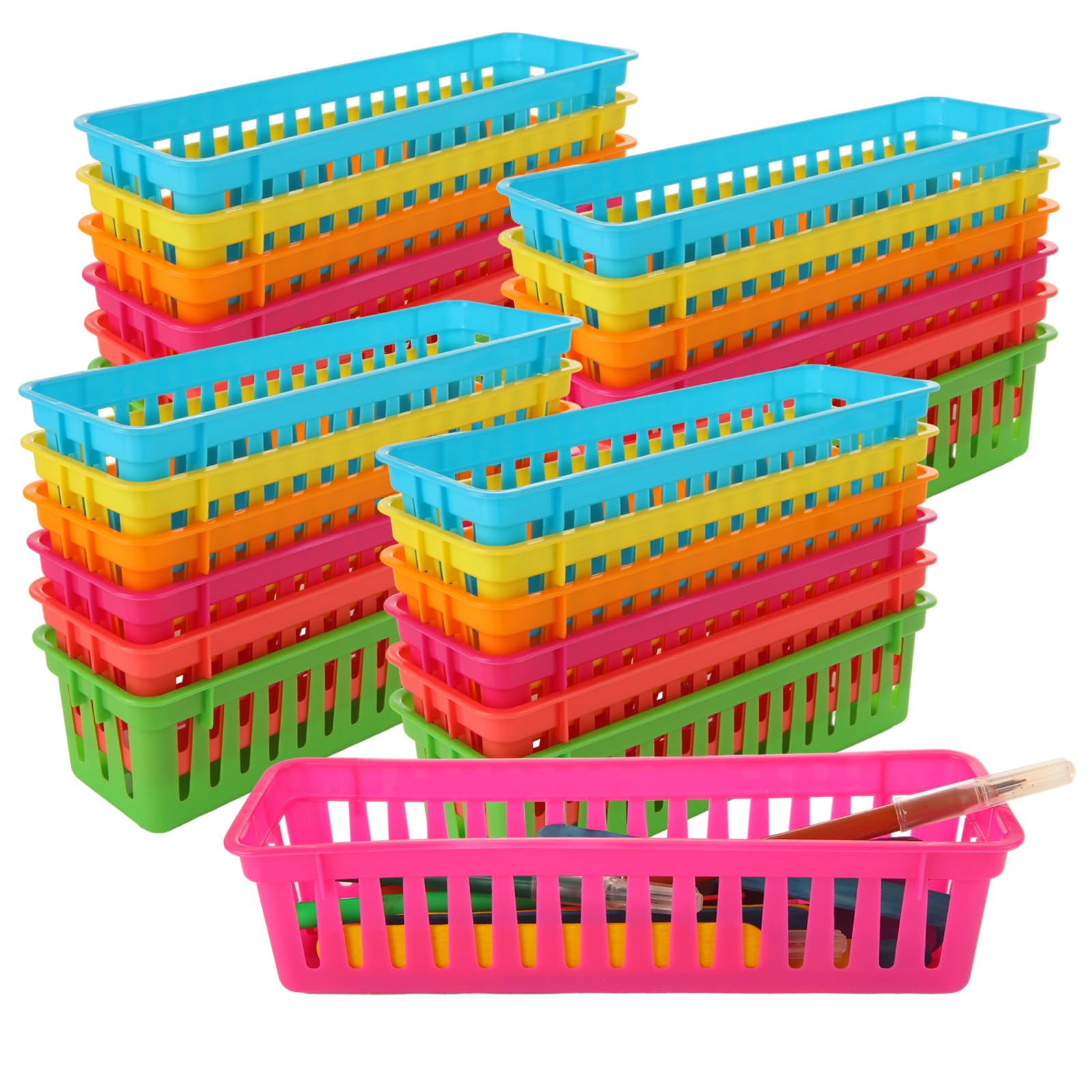 LANIAKEA Organizador de lápices para el aula, 24 unidades, bandeja colorida para organizar pequeños portalápices, bandeja para esc