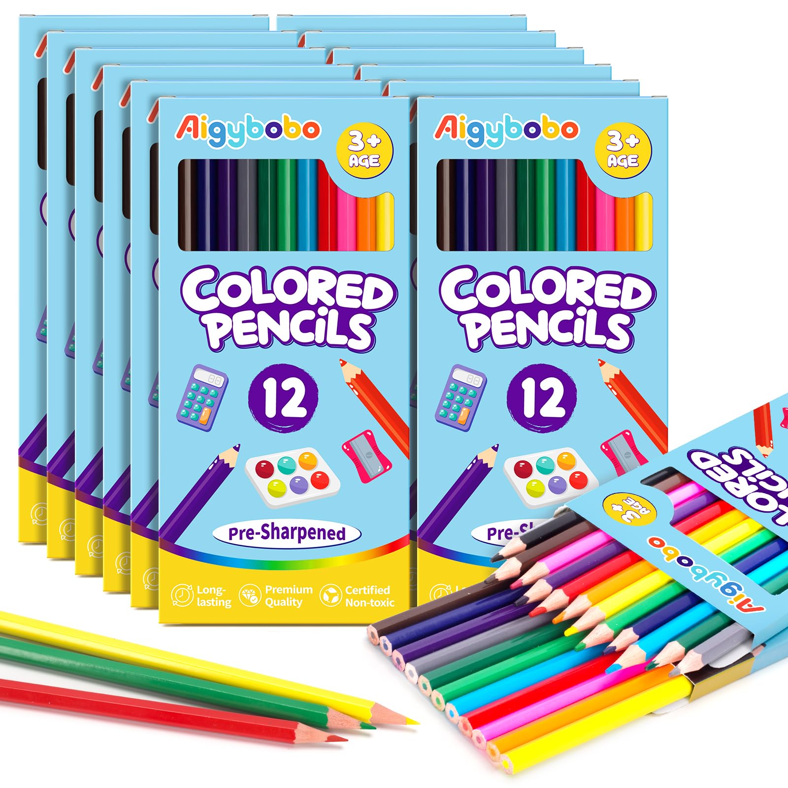 144 lápices de colores para niños, paquete de 12 lápices de colores a granel en 12 colores vibrantes, lápices de colores preafilad