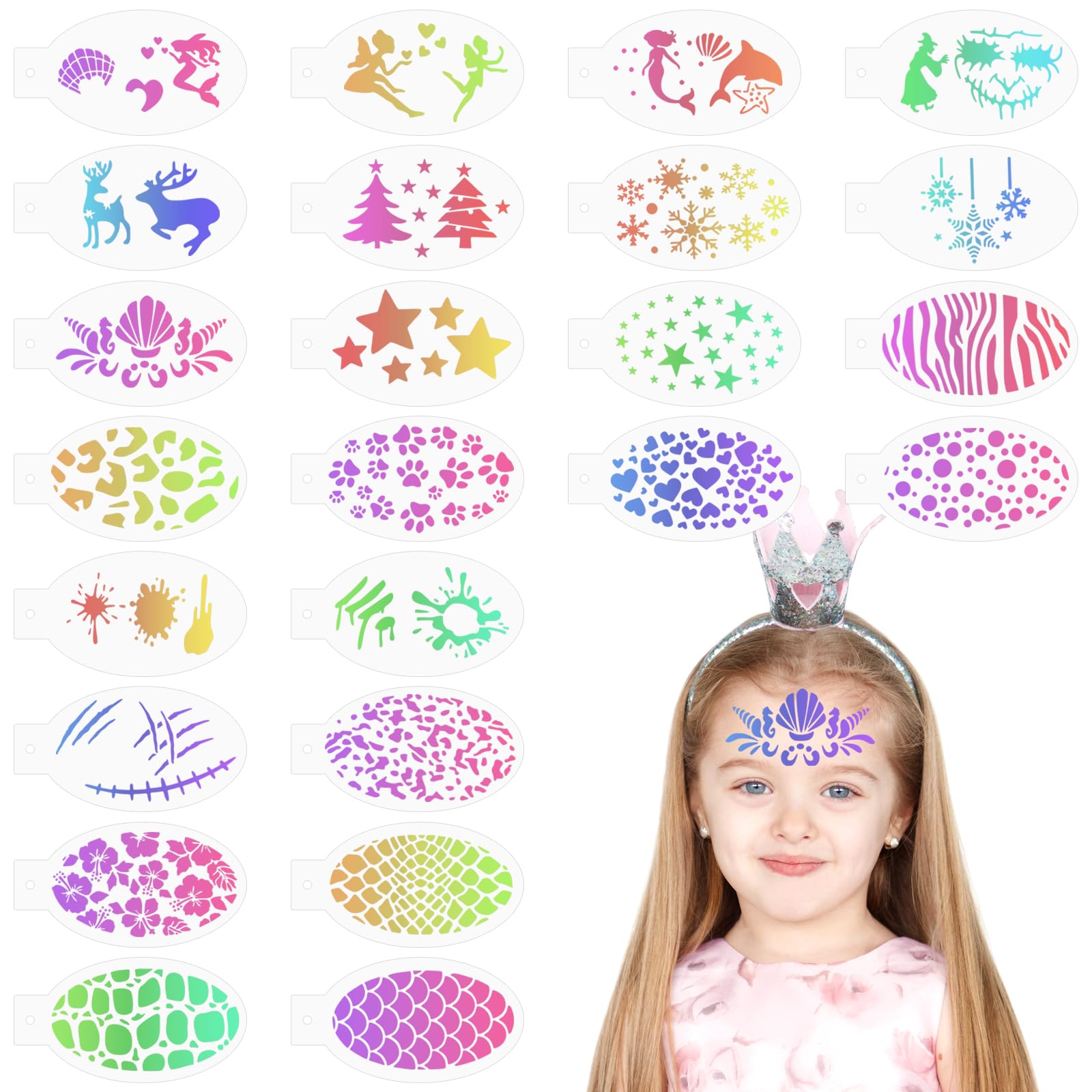 24 Pack Reusable Face & Body Paint Stencils – Durable Face Painting Stencil Body Painting Stencil Makeup Templates for Kids, Holid
