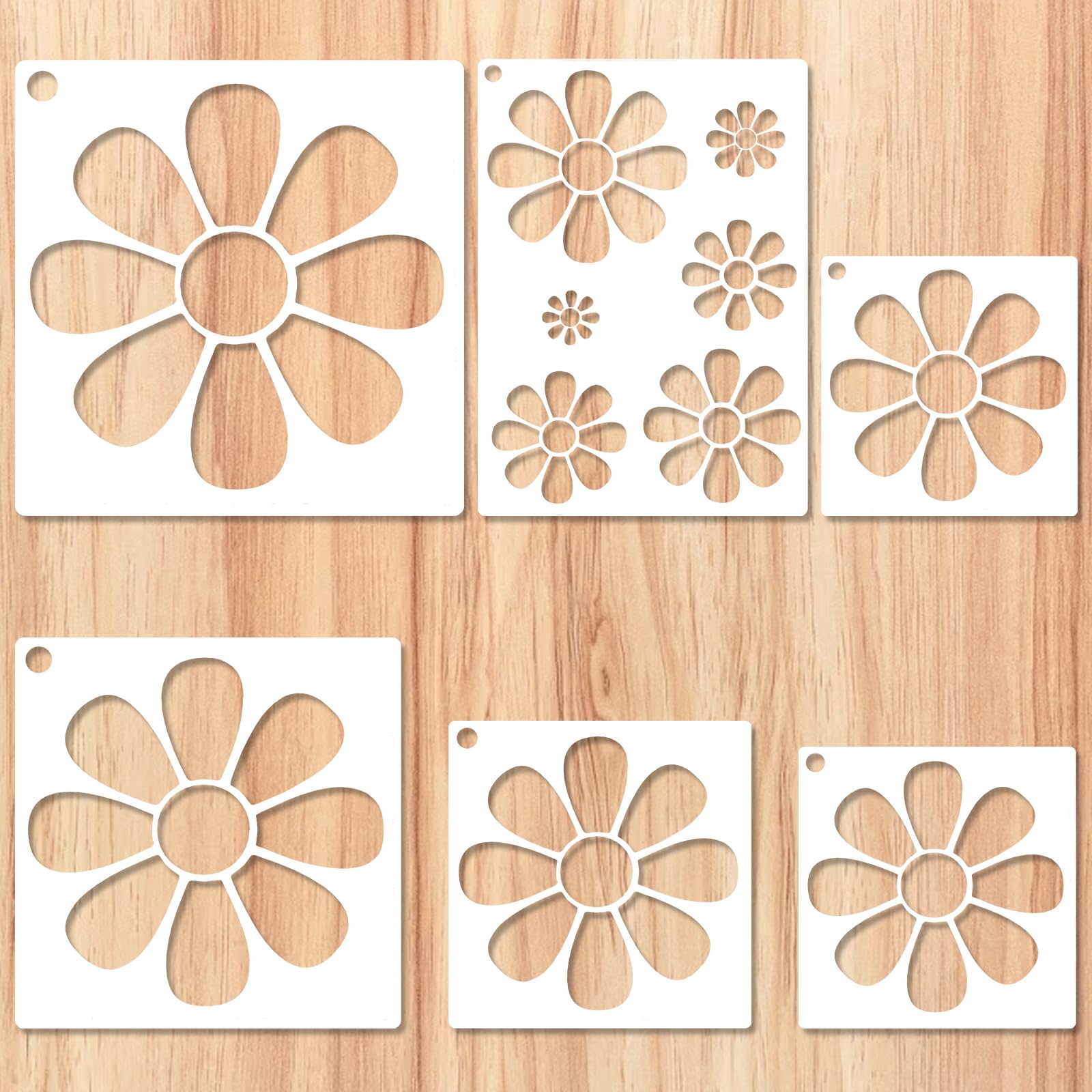 6 plantillas de flores para pintar en paredes, plantillas florales de margaritas de 6 a 12 pulgadas, plantillas de flores grandes