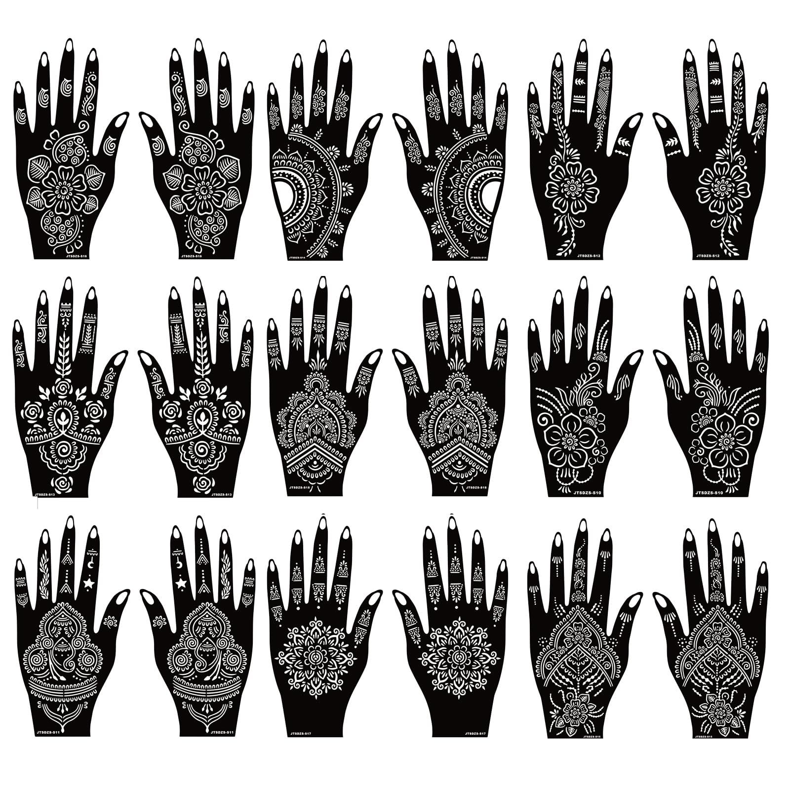 Plantillas de henna 18 hojas de tatuaje de henna manos henna tatuaje etiqueta engomada india tatuaje temporal plantilla autoadhesi