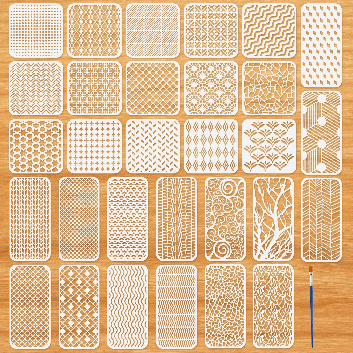 30 plantillas geométricas para pintar, plantillas de textura para manualidades reutilizables, plantillas de pintura en aerosol de