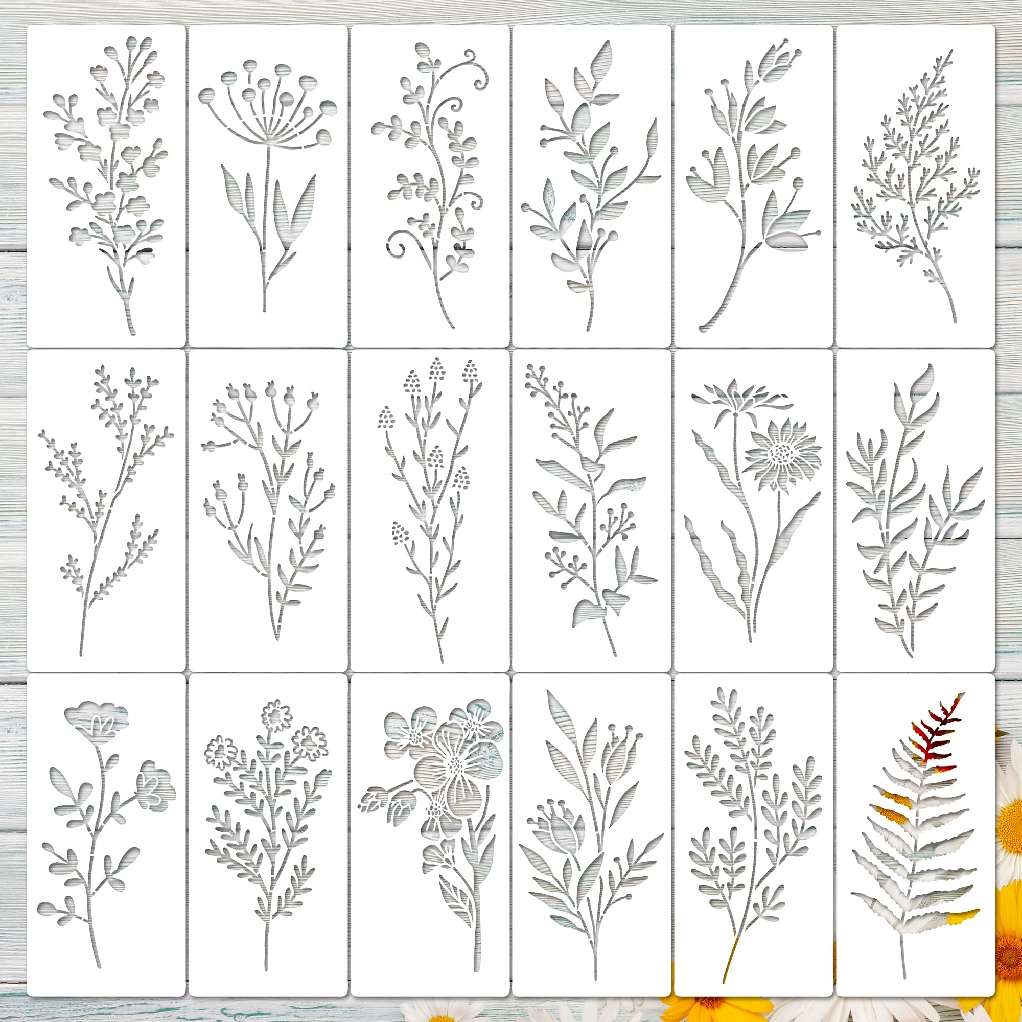 Keluna Plantillas de hojas de plantas para pintar, 18 plantillas reutilizables, plantillas de manualidades, juego de álbumes de re