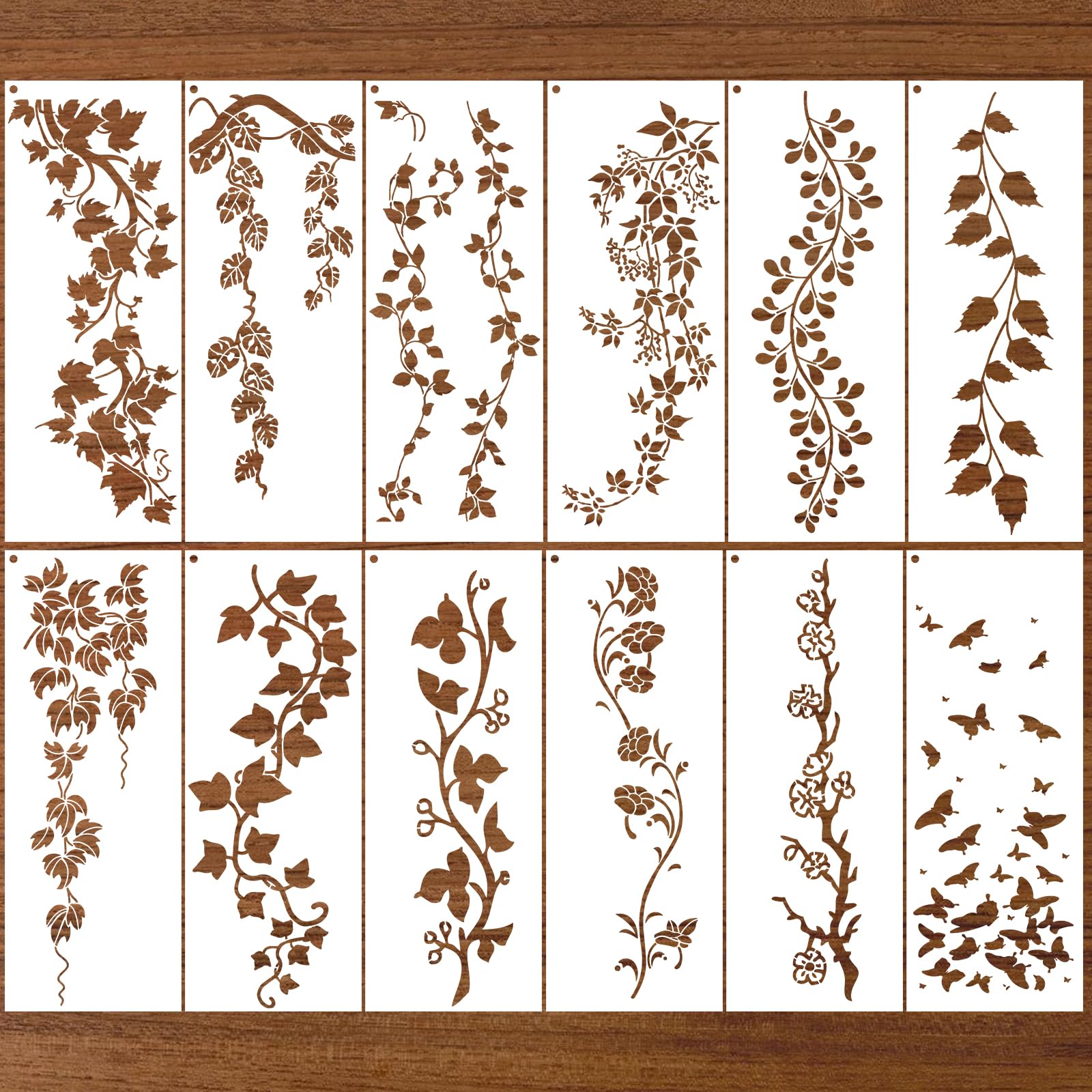 Plantilla de borde de vid para pintar, 12 plantillas de pared reutilizables de flores para pintar patrones grandes, plantilla de á