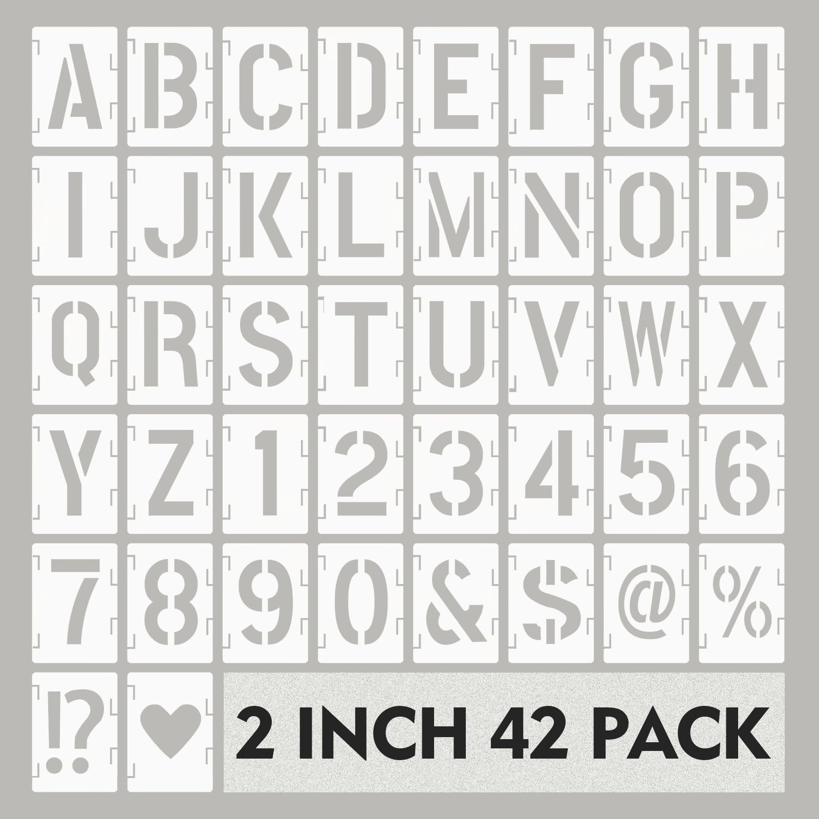 Plantillas de letras de 2 pulgadas, 42 plantillas de letras PET para proyectos de bricolaje, manualidades, pintura en aerosol, pla