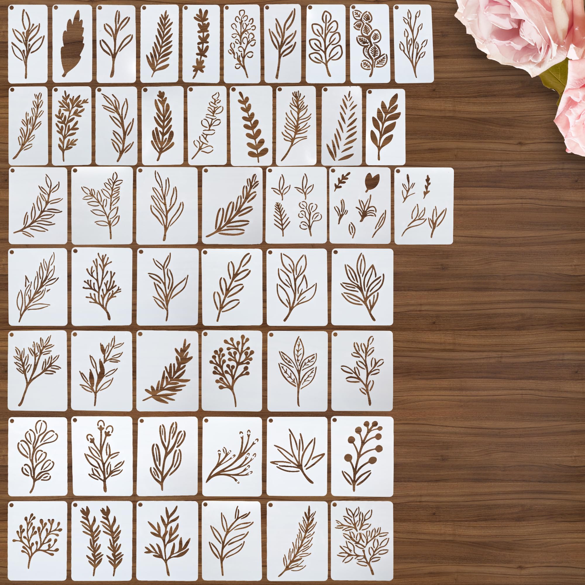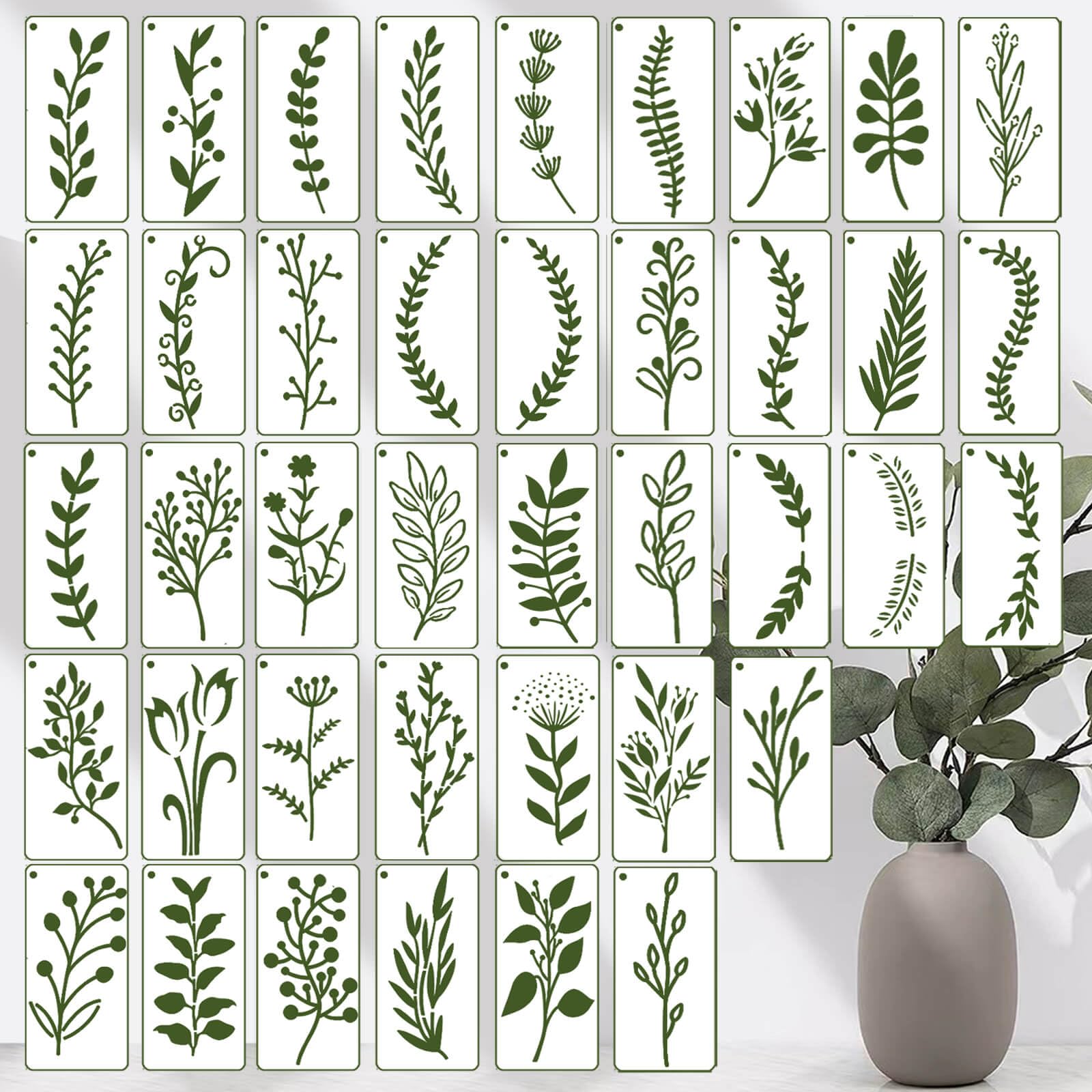 Paquete de 40 plantillas de hojas pequeñas para pintar sobre madera, plantillas reutilizables de vid de hojas para manualidades en