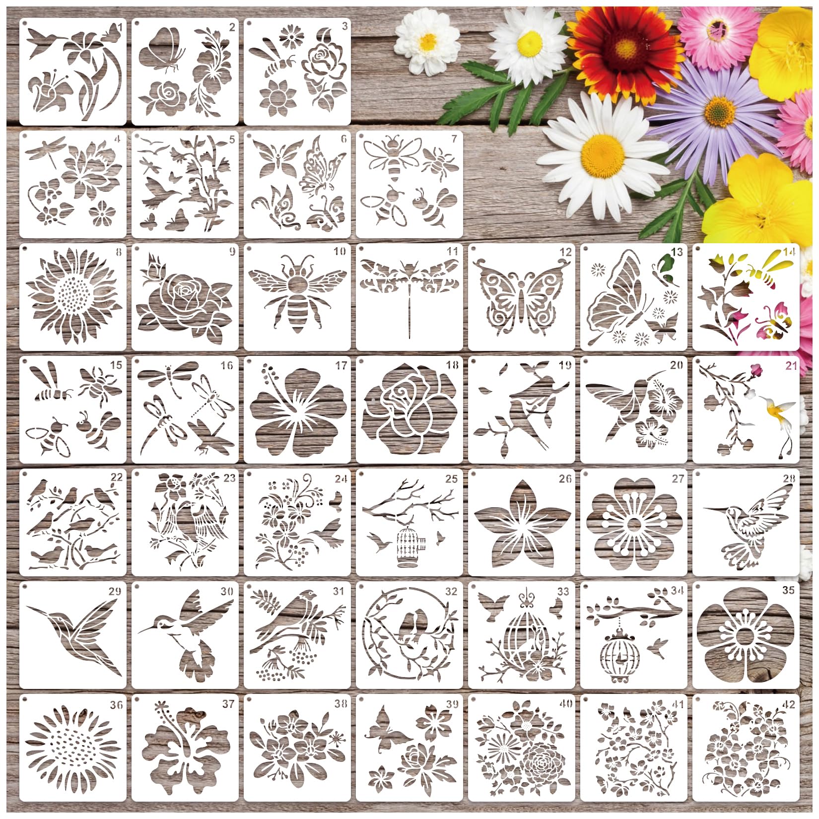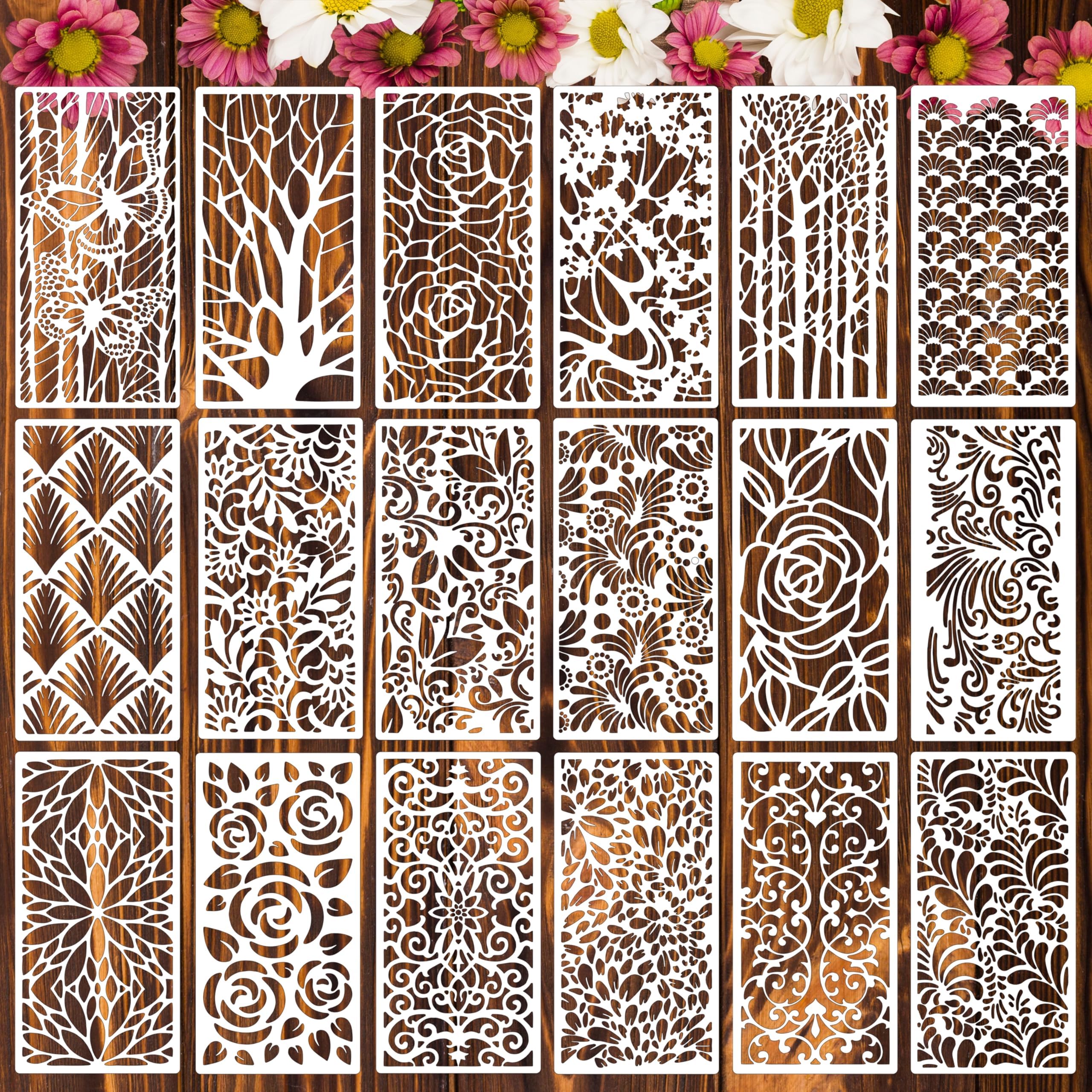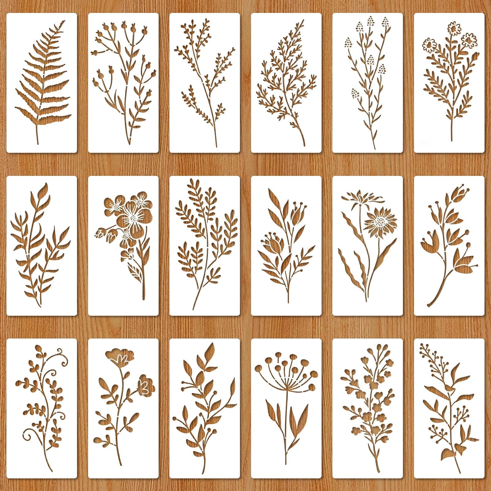 Plantillas para pintar sobre madera, 18 unidades, plantillas de flores reutilizables, plantillas de manualidades, plantillas de di