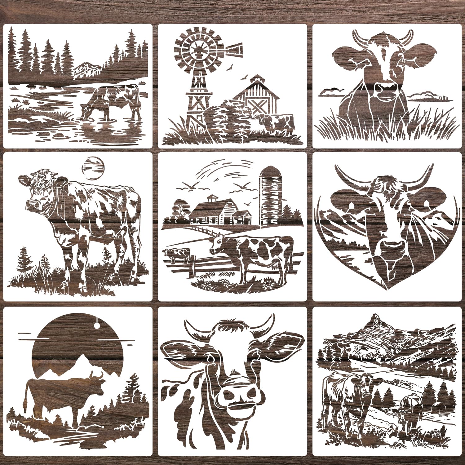 Plantillas de leña de animales para pintar plantillas de vaca, plantillas reutilizables de granja para manualidades, camiseta, tel