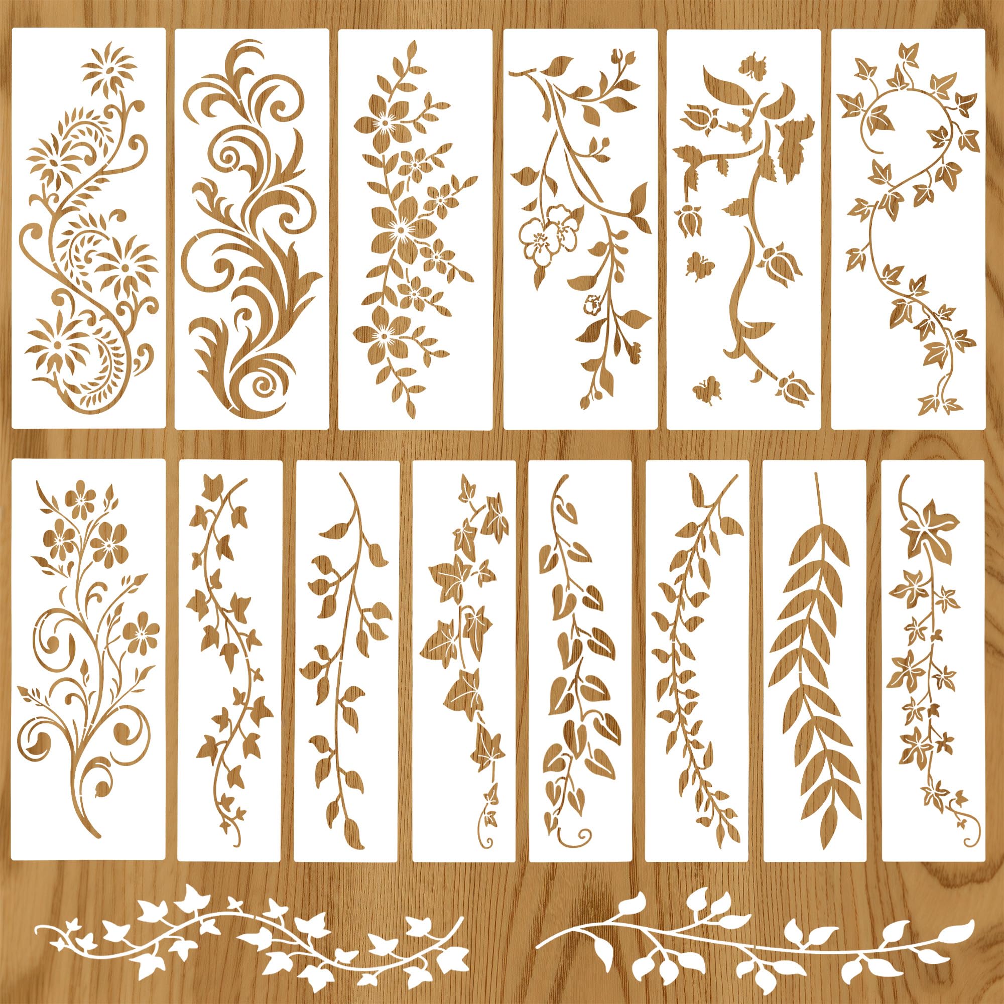 Plantillas para pintar sobre madera, 14 plantillas reutilizables de hojas/flores para pintar en paredes, muebles, decoración del h
