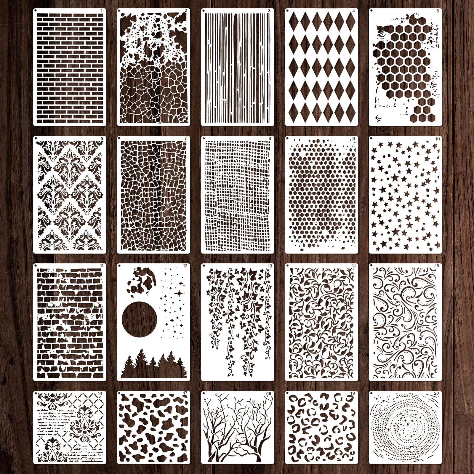 20 plantillas de fondo de ladrillo de árbol de hojas, plantillas geométricas reutilizables de ladrillo para manualidades, plantill