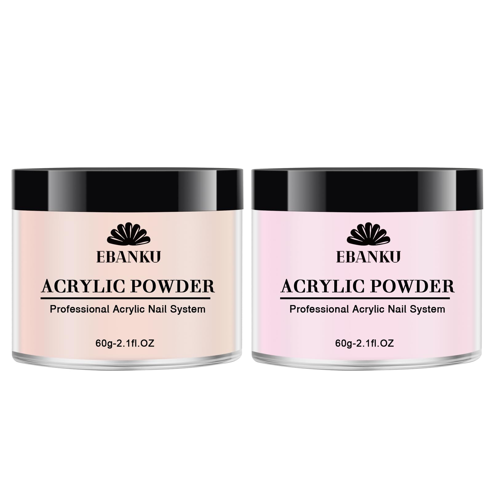 EBANKU Polvo acrílico rosa nude, 2 polvos acrílicos de 2.1 onzas, polvo acrílico profesional de gran capacidad para extensiones ac