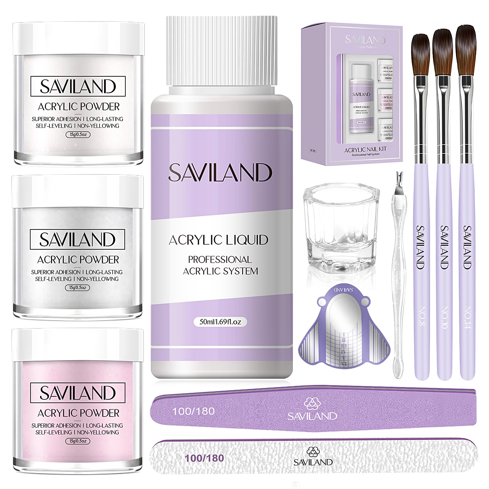 SAVILAND Kit básico de uñas acrílicas: kit de uñas acrílicas para principiantes con todo, blanco y rosa, juego de líquido y polvo