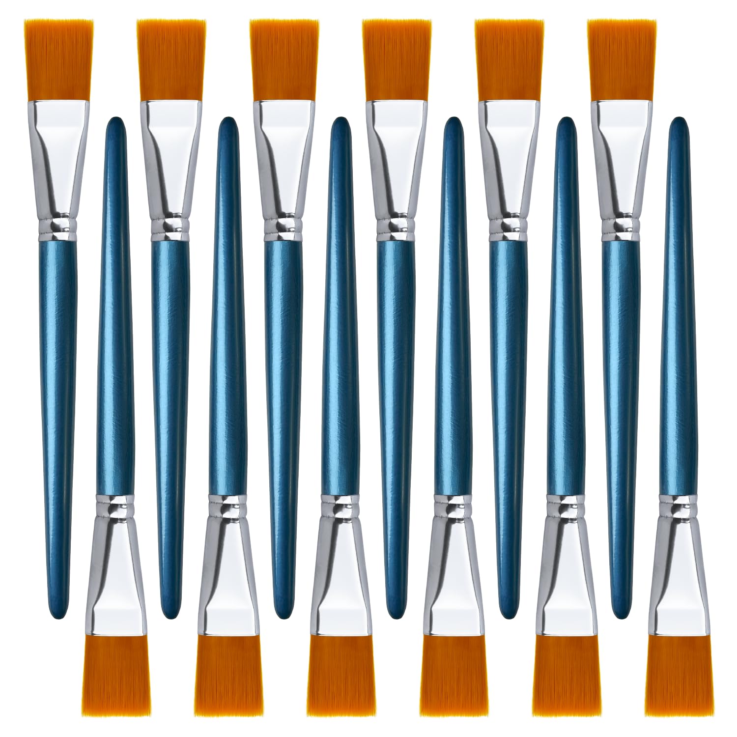 Great Anderw – 12 pinceles planos de 1 pulgada para pintura acrílica, pinceles pequeños con mango de madera para acrílico, acuarel