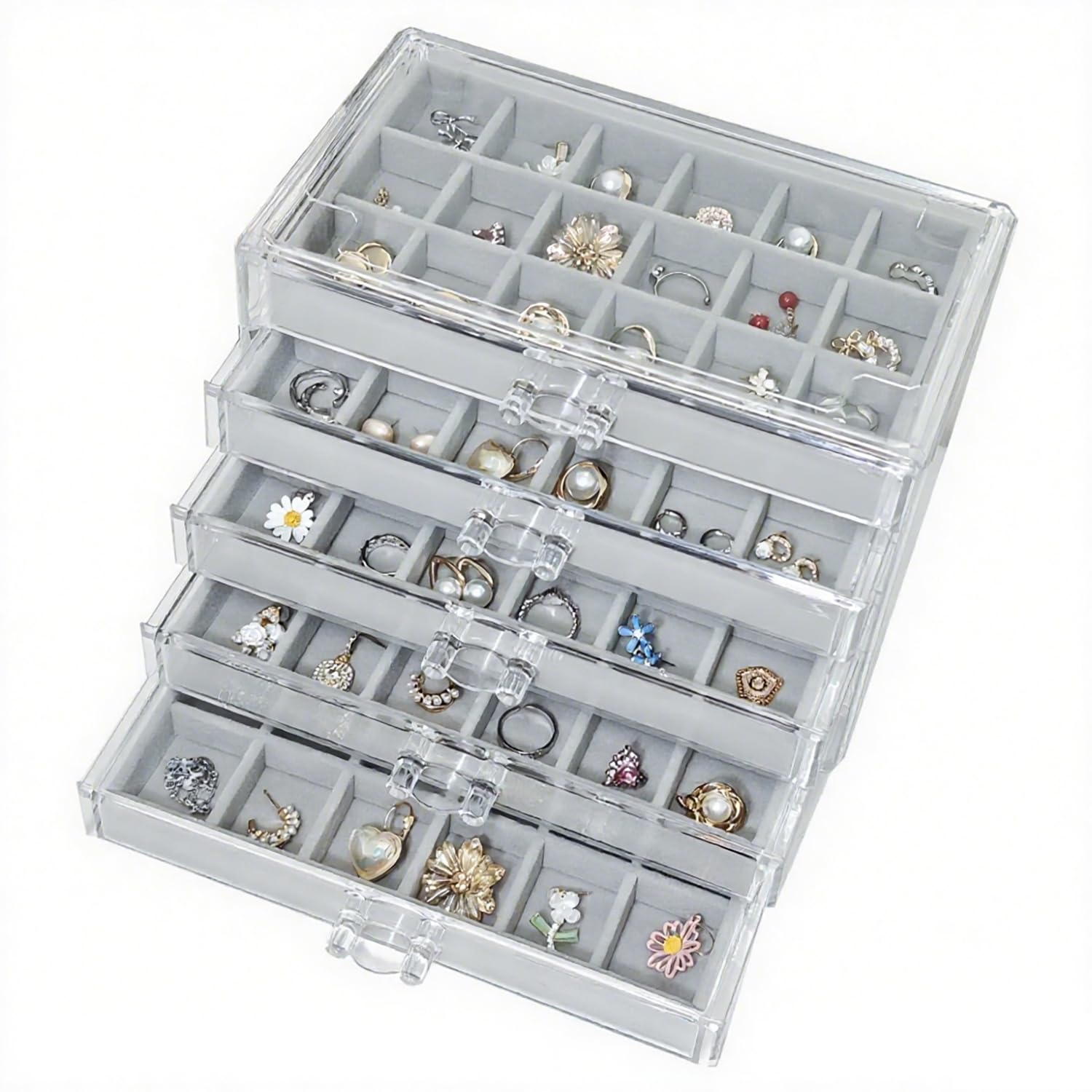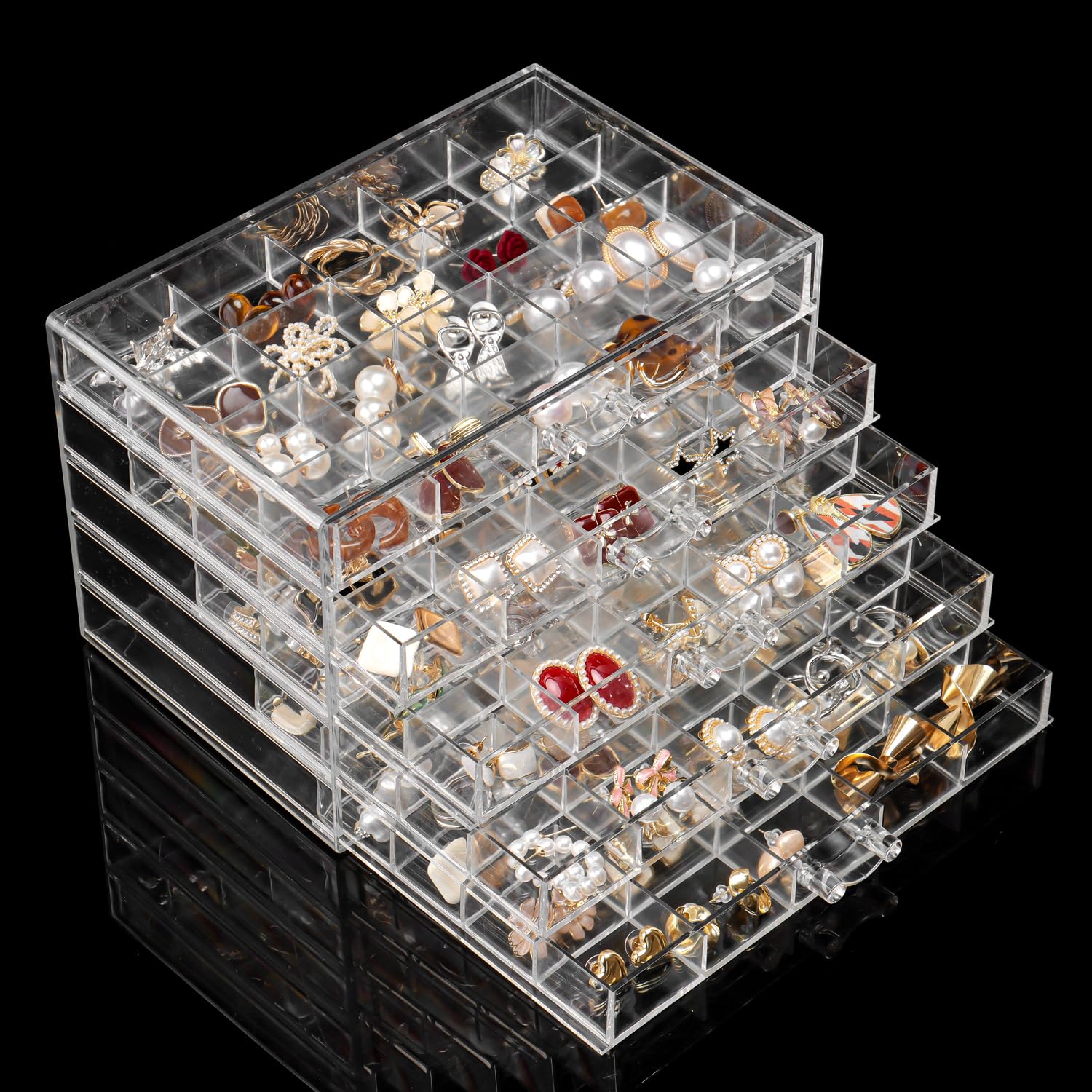 Organizador de aretes de acrílico con 5 cajones, caja organizadora de aretes transparente con 90 rejillas ajustables, vitrina de t