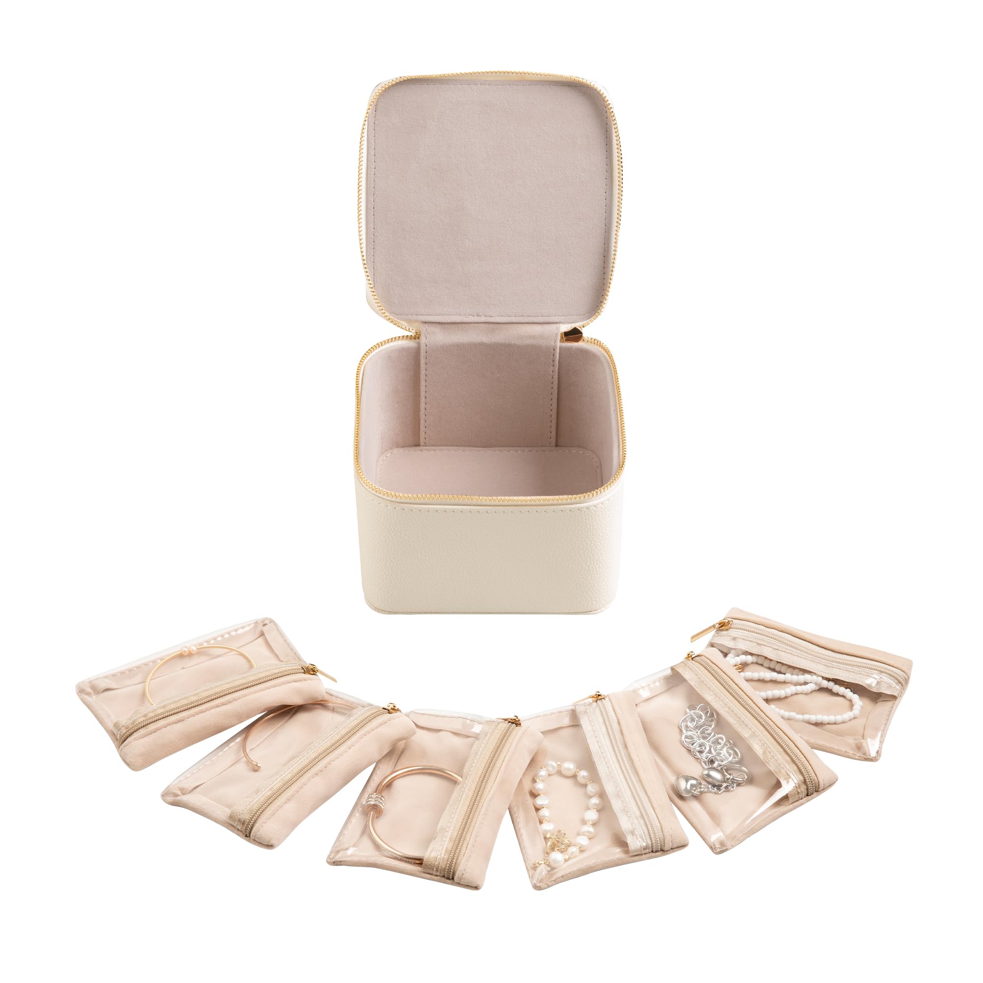 Frebeauty Joyero de viaje pequeño con 6 bolsas, almacenamiento portátil de mini joyas, 3.35 x 4.9 x 4.8 pulgadas, idea de regalo p