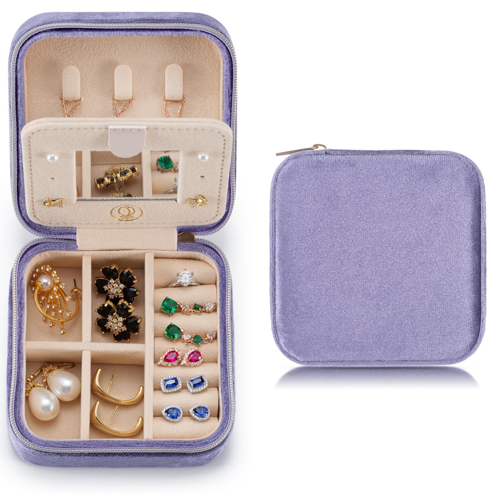 Joyero de viaje de terciopelo de felpa, pequeño joyero de viaje, caja de joyería portátil, mini organizador de viaje, caja de alma
