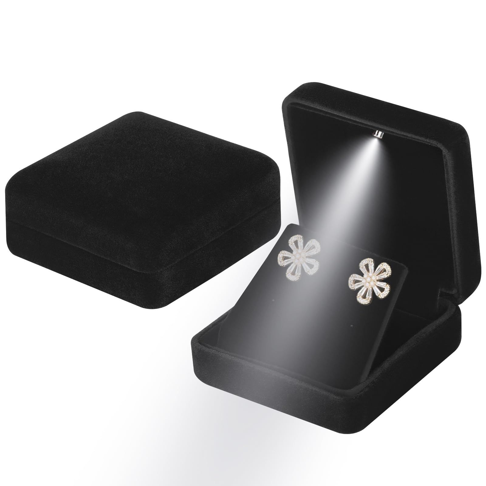 LETURE Caja de regalo de aretes de metal de terciopelo con luz LED, estuche pequeño de lujo para aretes, collar y colgante, exhibi
