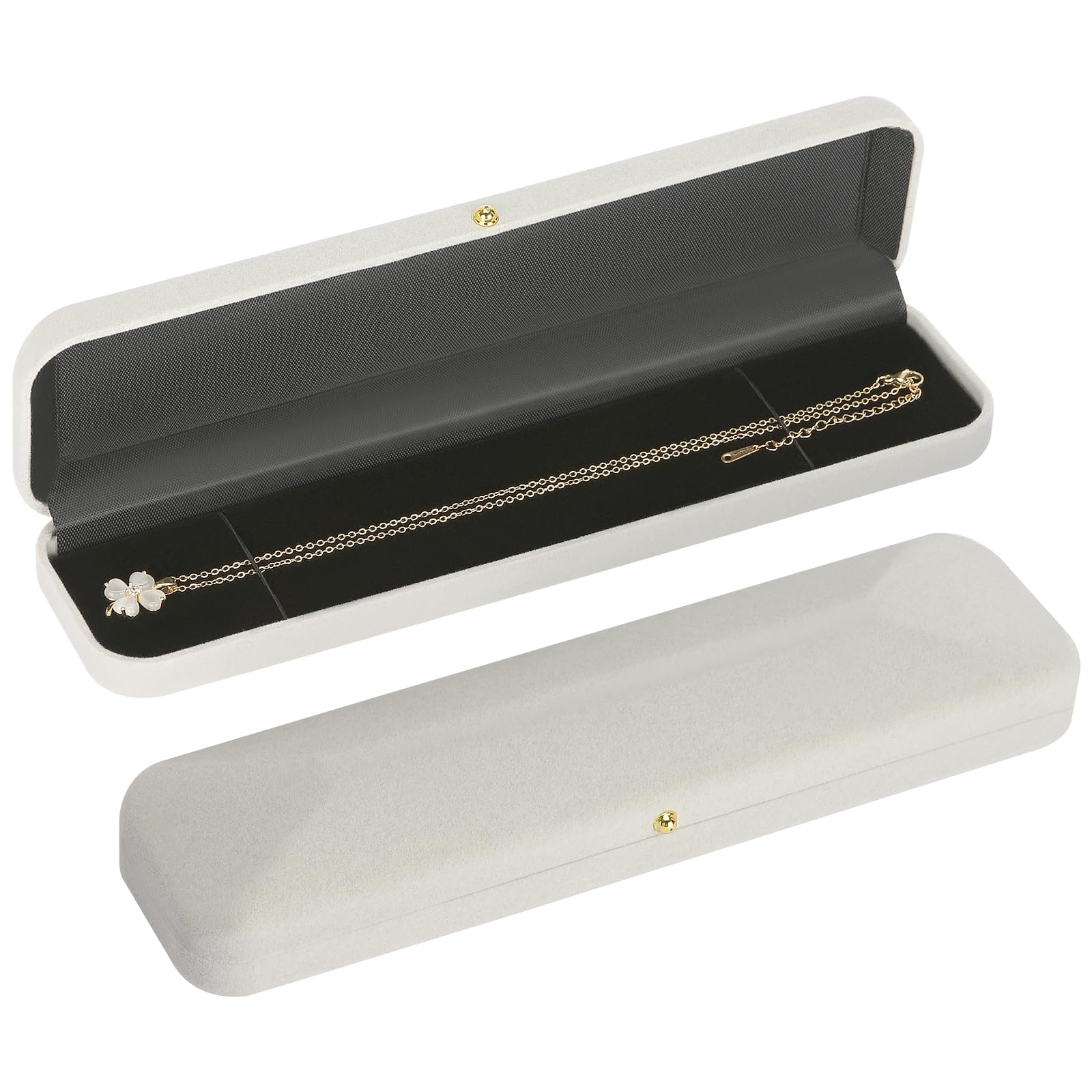Caja de regalo de 2 piezas de terciopelo, collar y pulsera, estuche largo para joyería, caja de almacenamiento con cadena para muj