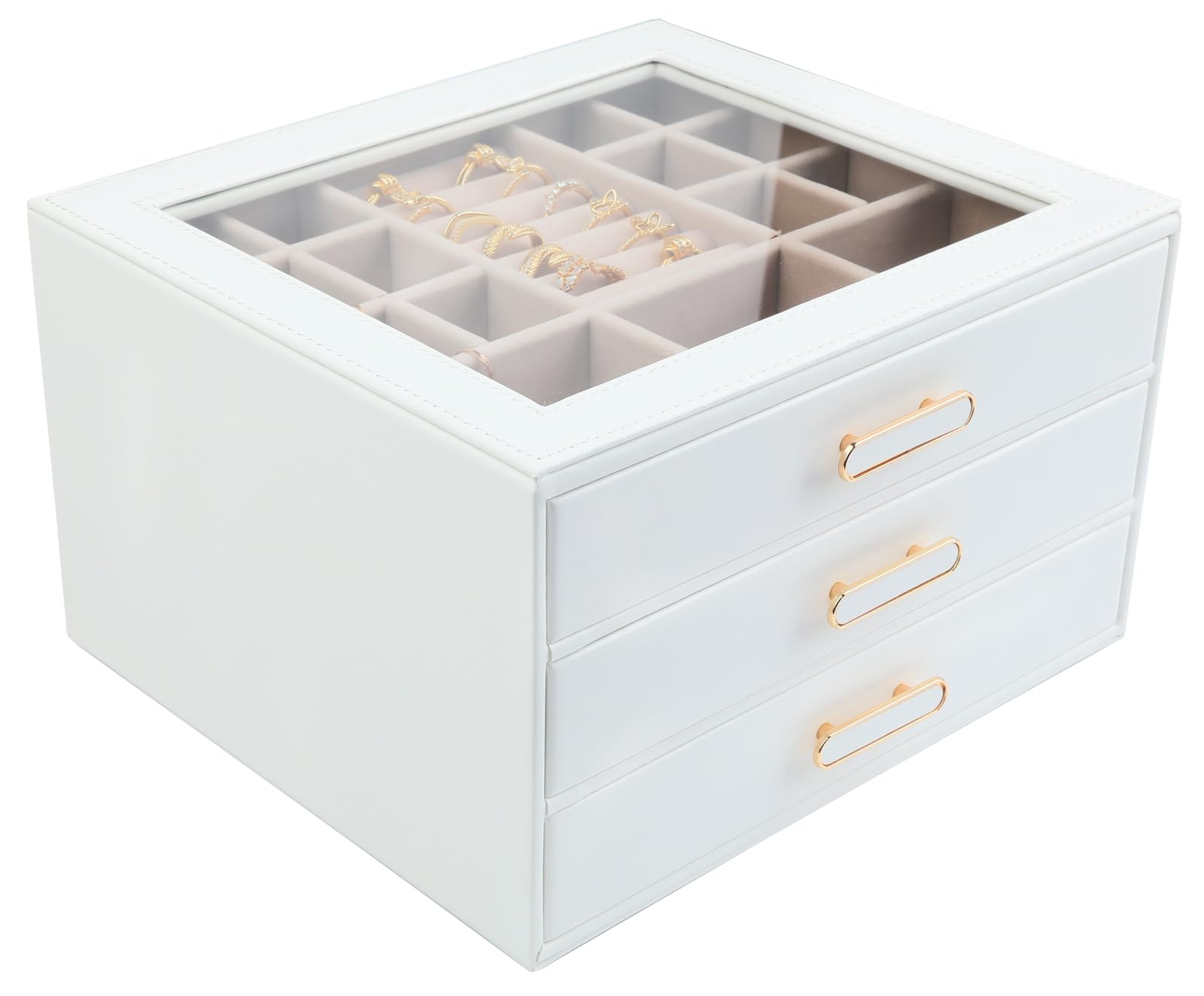 Joyero organizador con tapas de vidrio de 3 capas, caja de almacenamiento de joyería de piel sintética para mujer, adecuada para a