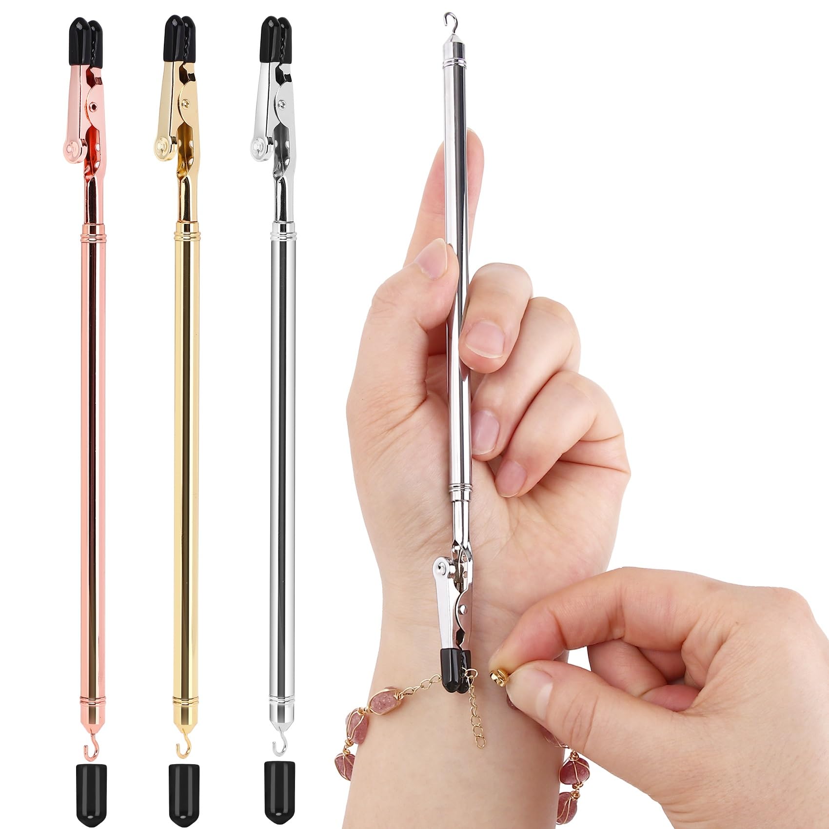 Pulsera de metal ayudante para ponerte a ti mismo pulsera de metal con gancho (oro rosa)
