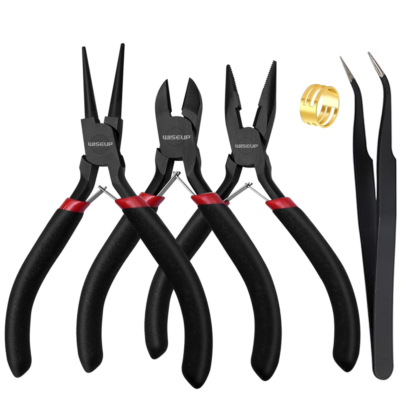 WISEUP Juego de 3 alicates de joyería – nariz de aguja/cadena, punta redonda y cortadores de alambre para manualidades, reparación