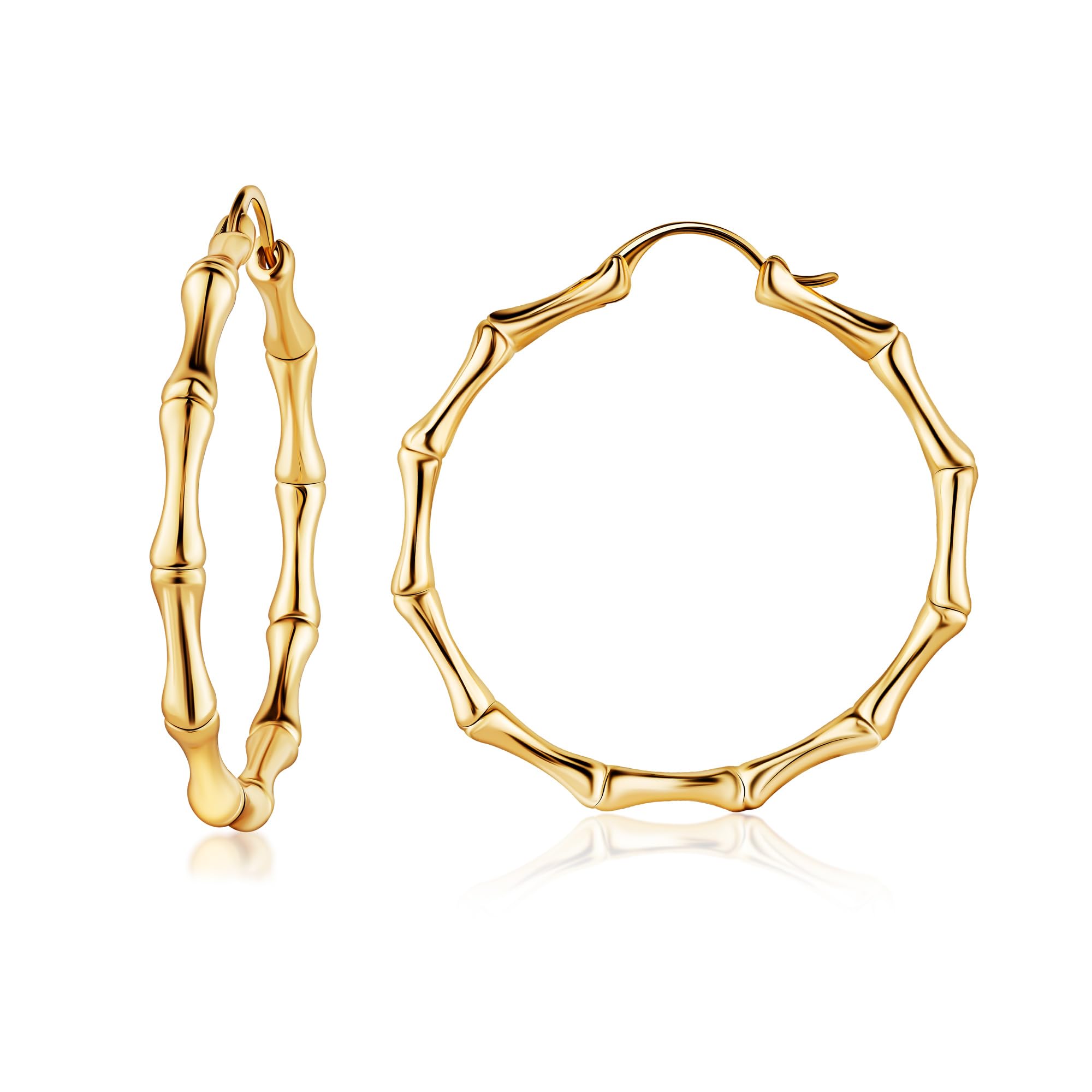 Barzel – Aretes de aro de bambú de oro para mujer, chapados en oro de 18 quilates, oro rosa o blanco