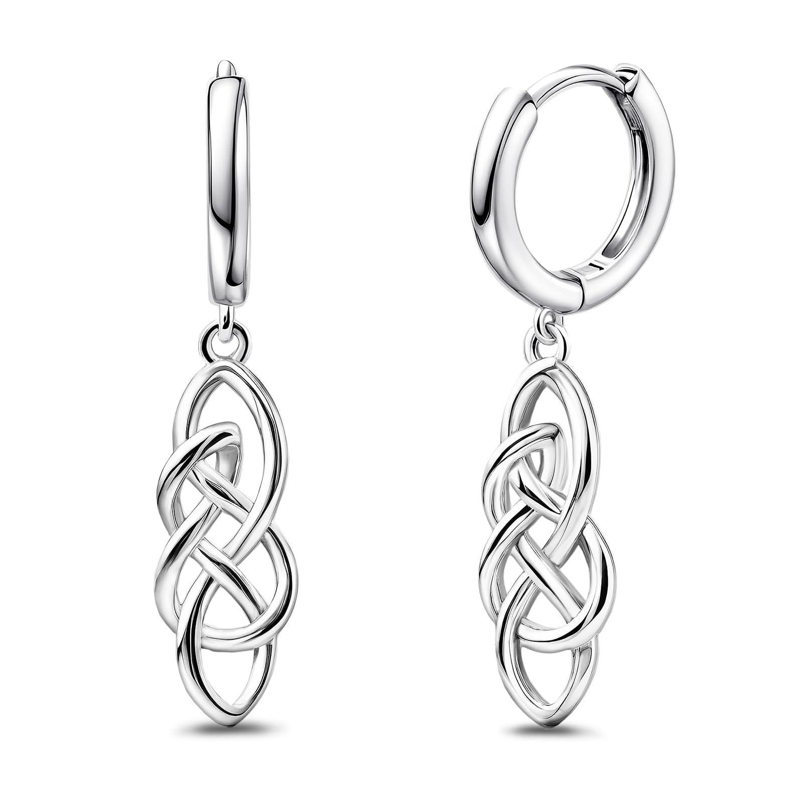 Aretes de nudo celta para mujer, aretes de aro de plata de ley para mujer, aretes de aro largos hipoalergénicos de moda con dije c