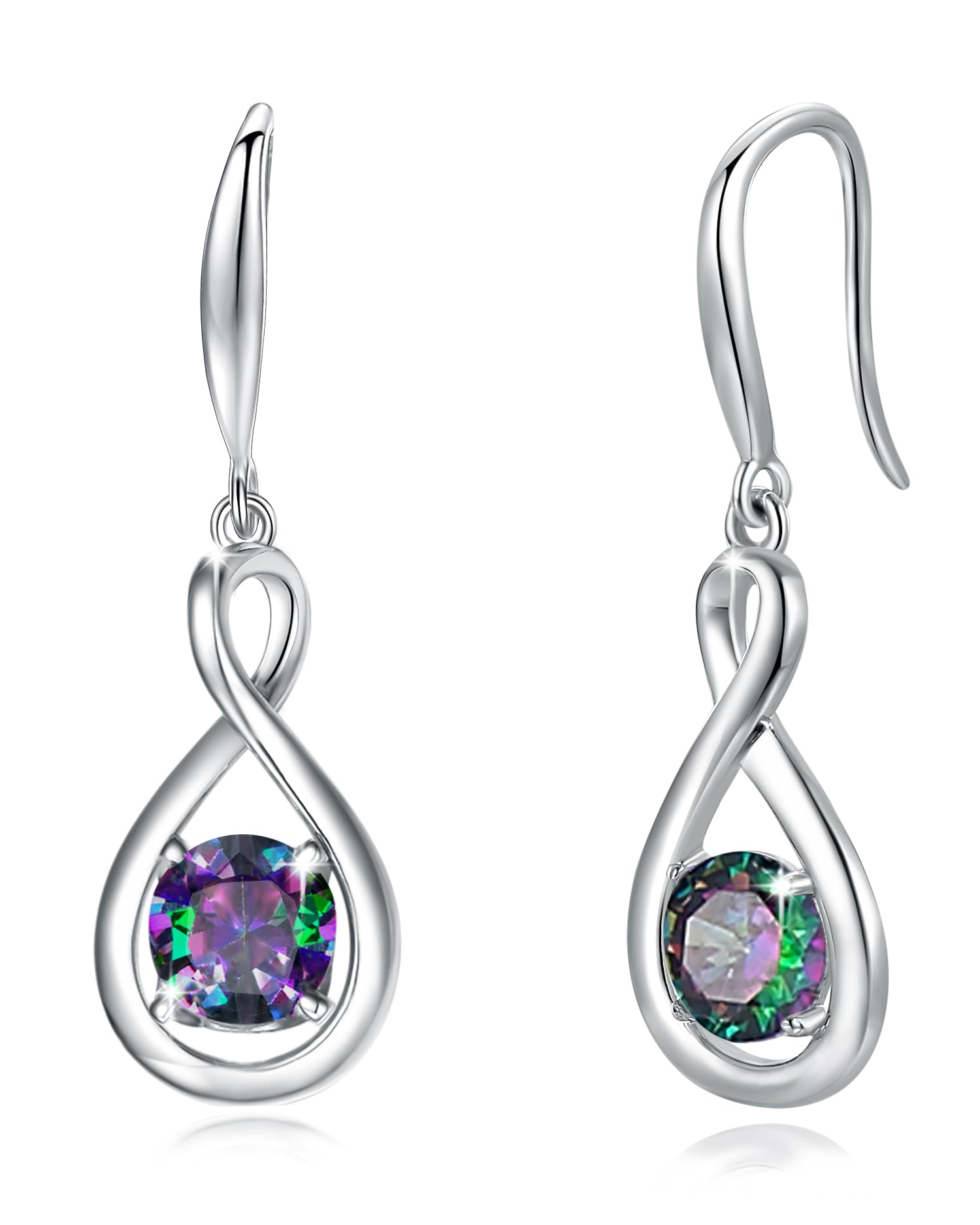 FANCIME Aretes colgantes de plata de ley 925 con piedras preciosas redondas infinitas, regalos de cumpleaños para mujer