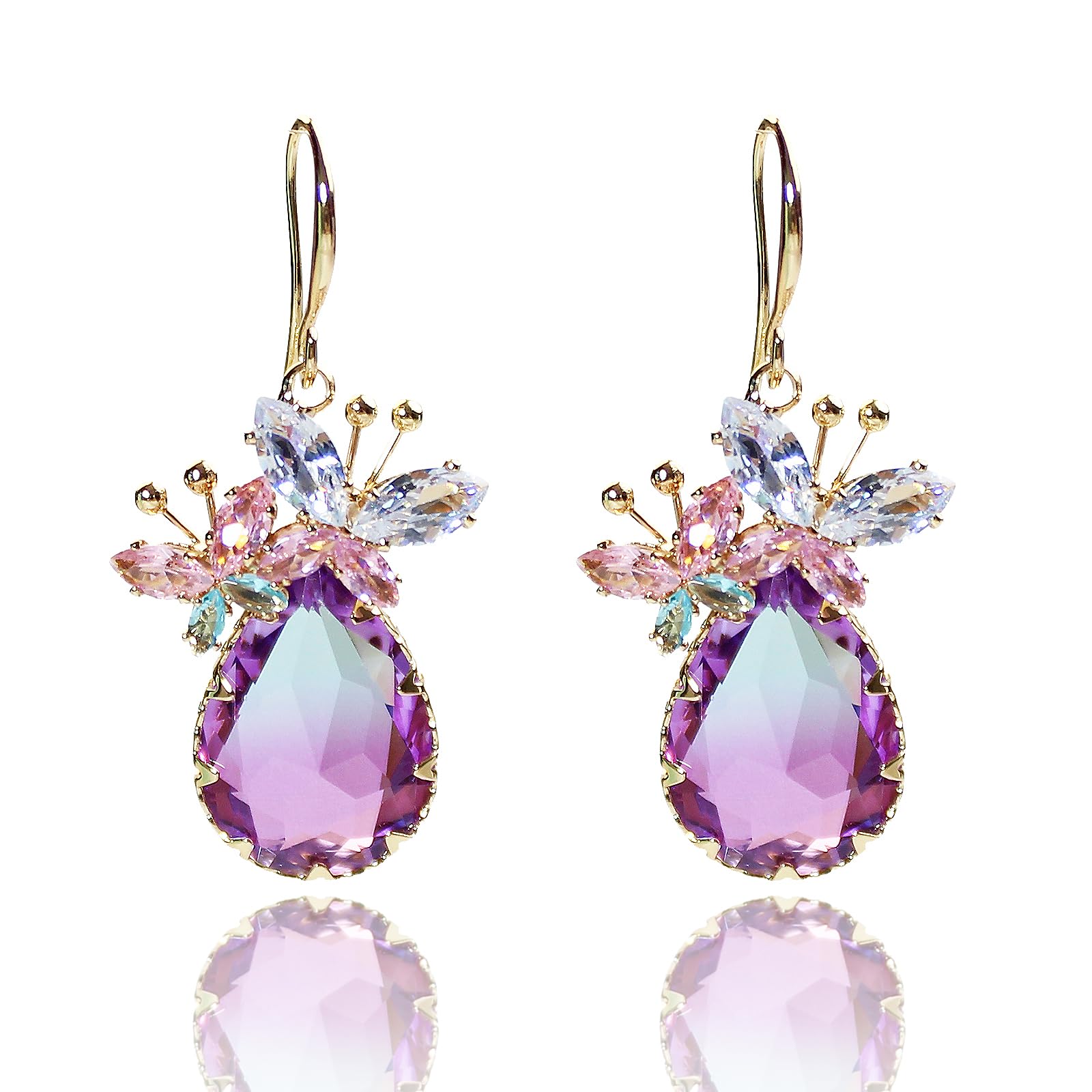 Aretes colgantes de mariposa con forma de lágrima de cristal para mujer, aretes colgantes de circonita cúbica transparente, regalo