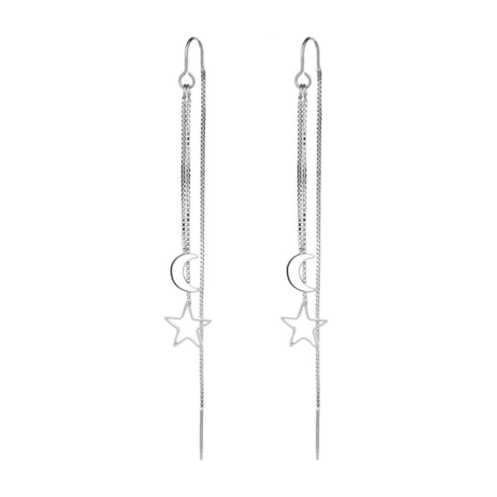 Aretes colgantes de plata de ley 925 con dijes, corazón, gota de agua, luna, estrella, aretes largos de gota para mujer, joyería d