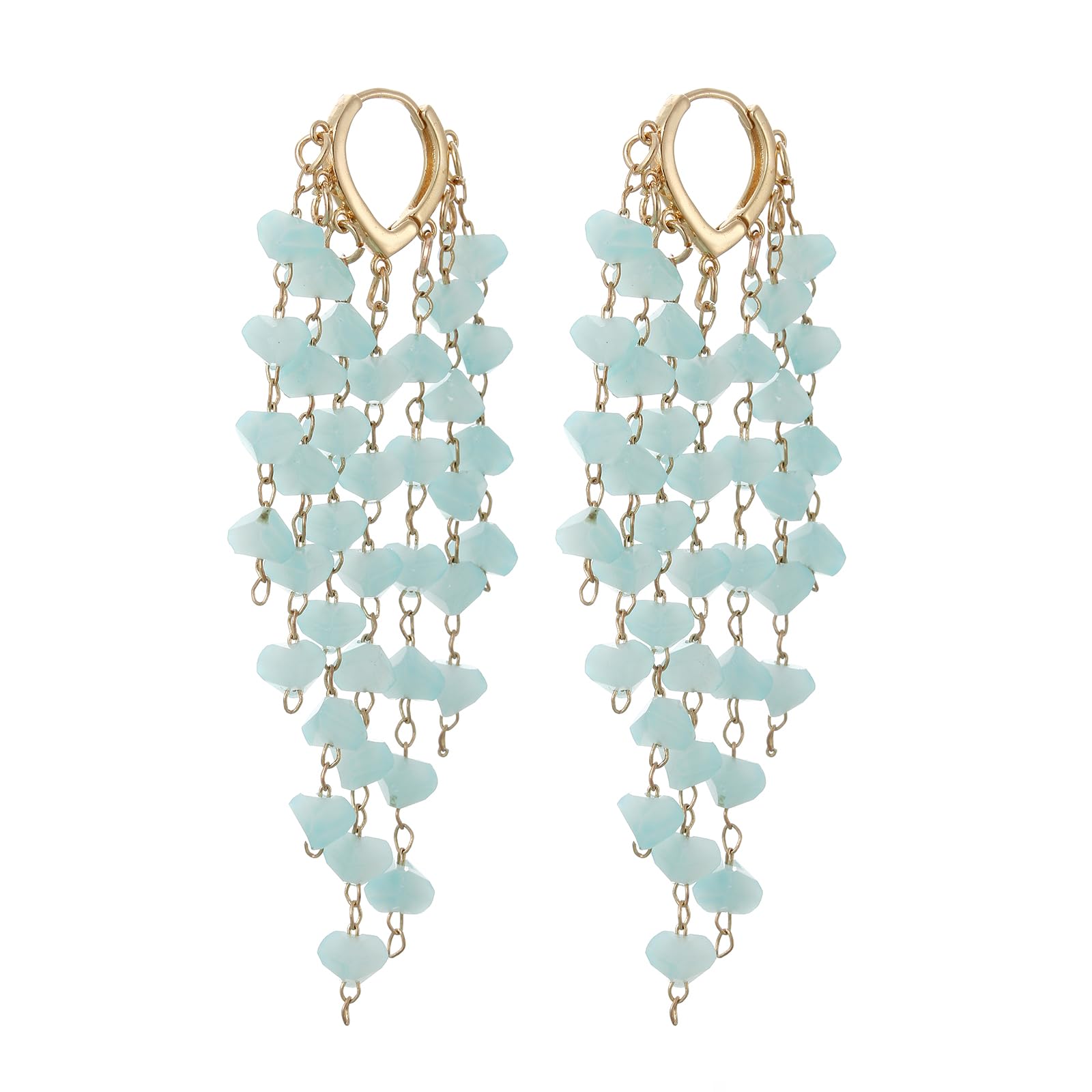 Aretes colgantes de aro con flecos, aretes de cadena de borla de cuentas largas para mujer, aretes de araña brillantes