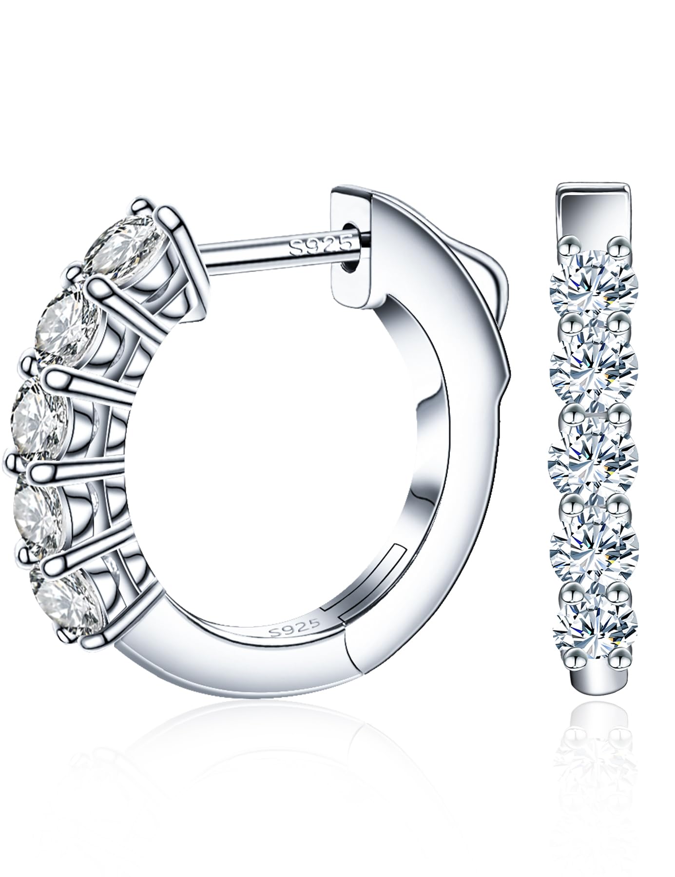 Aretes de aro de moissanita y aretes de oreja para mujeres y hombres, chapados en oro blanco de 18 quilates, aretes de aro pequeño