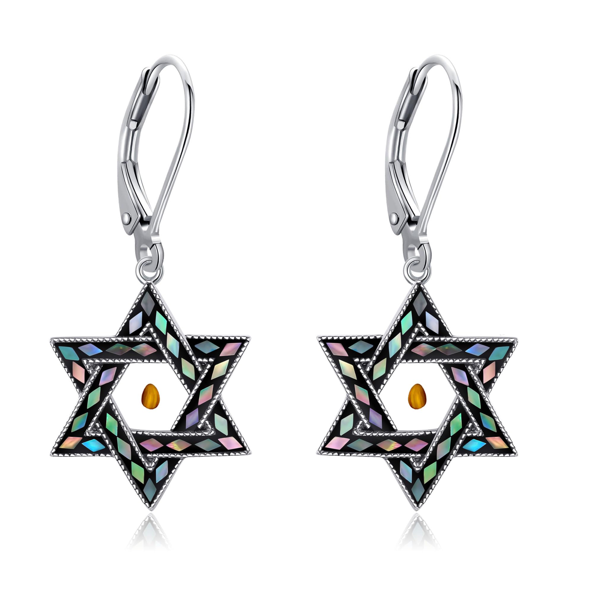 Aretes de plata de ley 925 con diseño de estrella de David y estrella de David, joyería cristiana judía, regalos para mujer