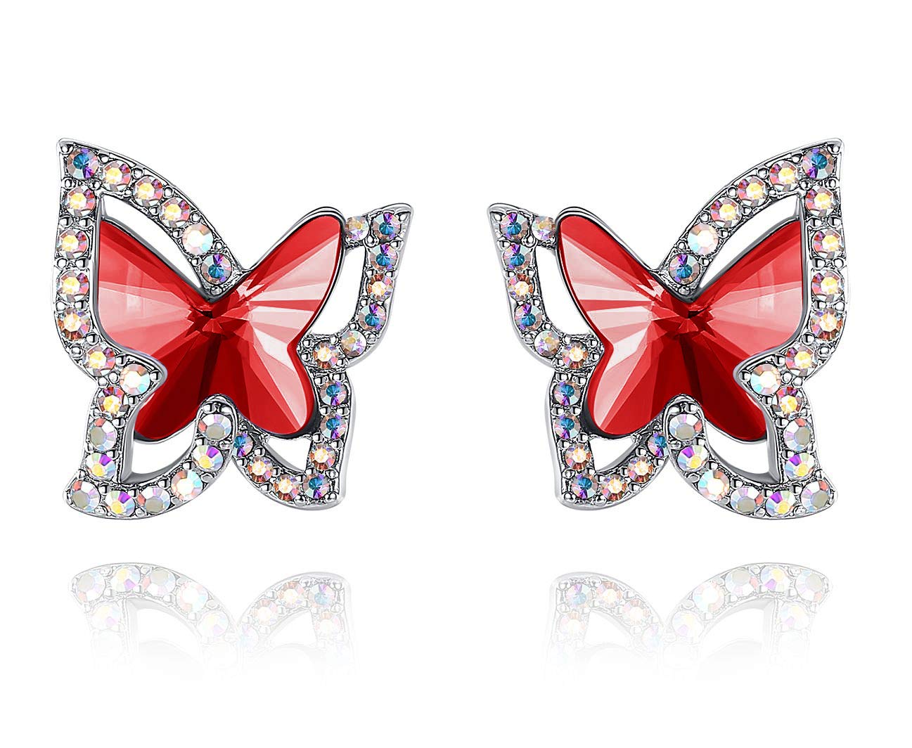 Aretes de mariposa de cristal para mujer con piedra natal de primera calidad, tono plateado, joyería para el día de la madre, día