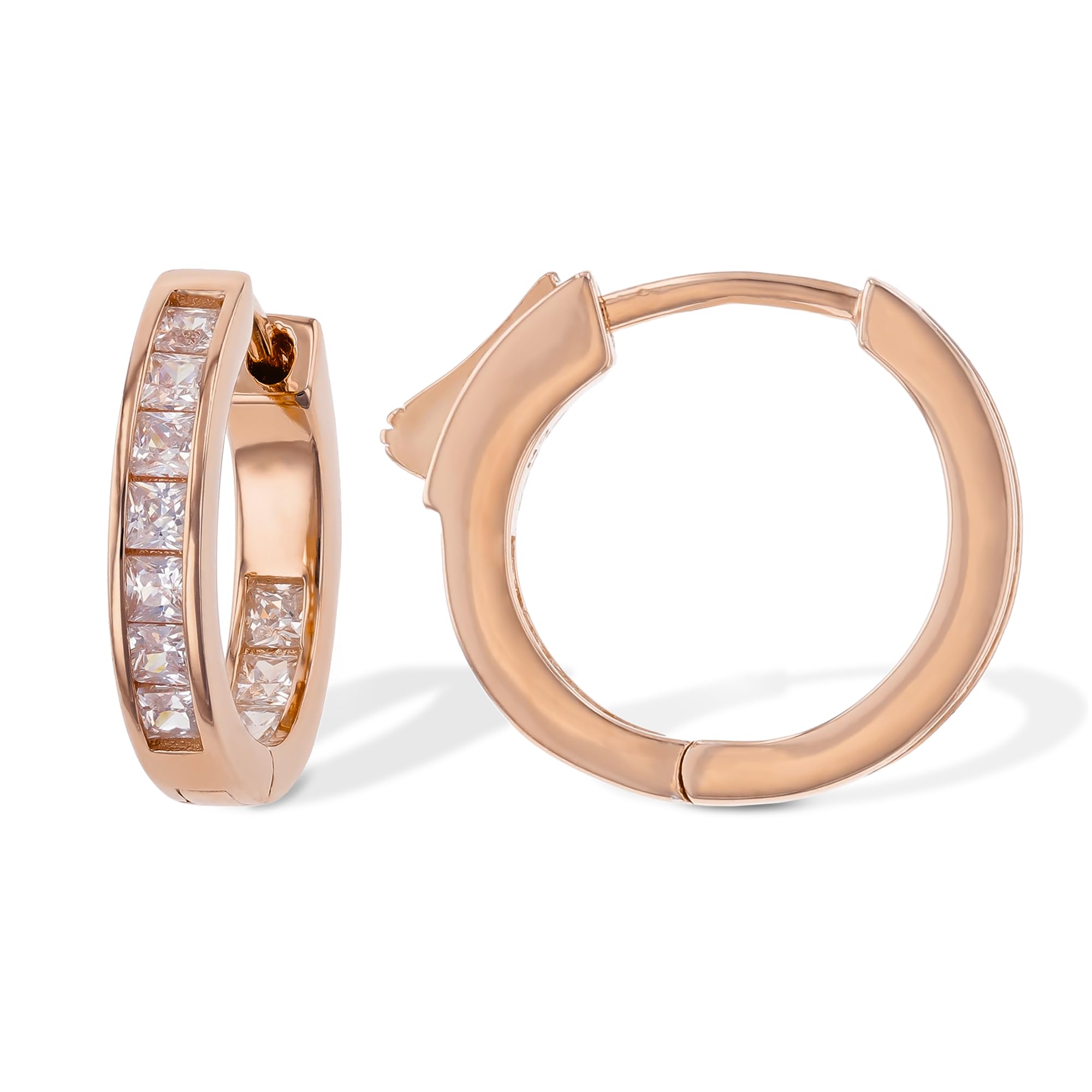 Aretes de aro con circonita cúbica de 1.75 quilates – Aretes de aro de plata de ley – Aretes de aro pequeños – Pendientes sin desl